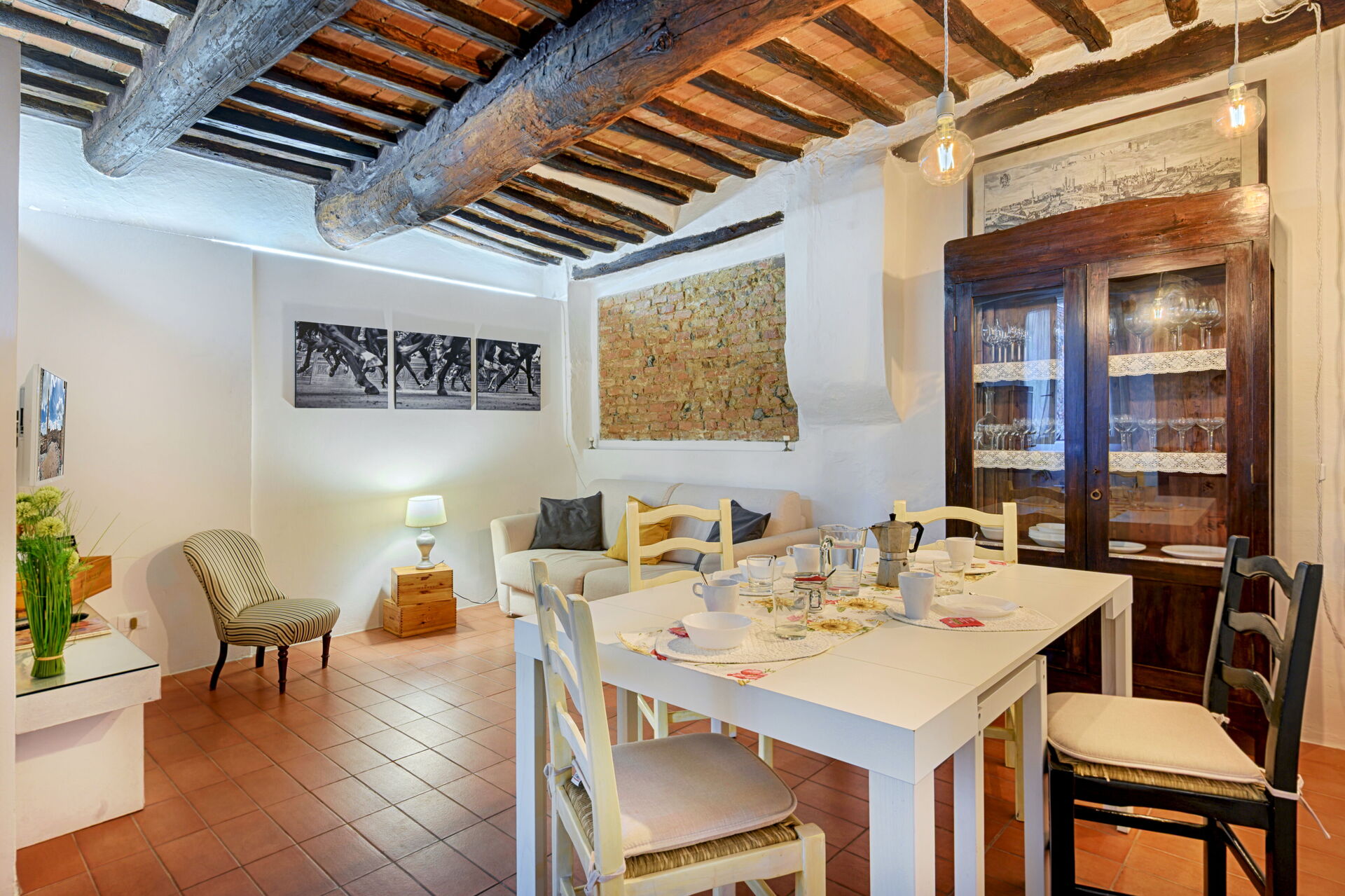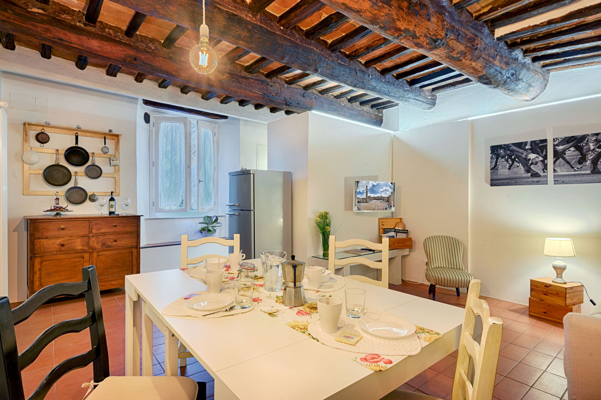 Ved ankomst vil I møde en dejlig ren velholdt ejendom ideel til fredelig ferie i Toscana. Efter en travl dag med sightseeing, er det dejligt at nyde lidt tid med venner og familie med et glas vin - det er en perfekt måde at slappe af på sidst på dagen. Hvis I nyder at lave mad til familie og venner så er der et veludstyret køkken inkluderet kaffemaskine, mikroovn, brødrister, komfur og køleskab, samt, , samt masser af service og bestik til op til fire personer.