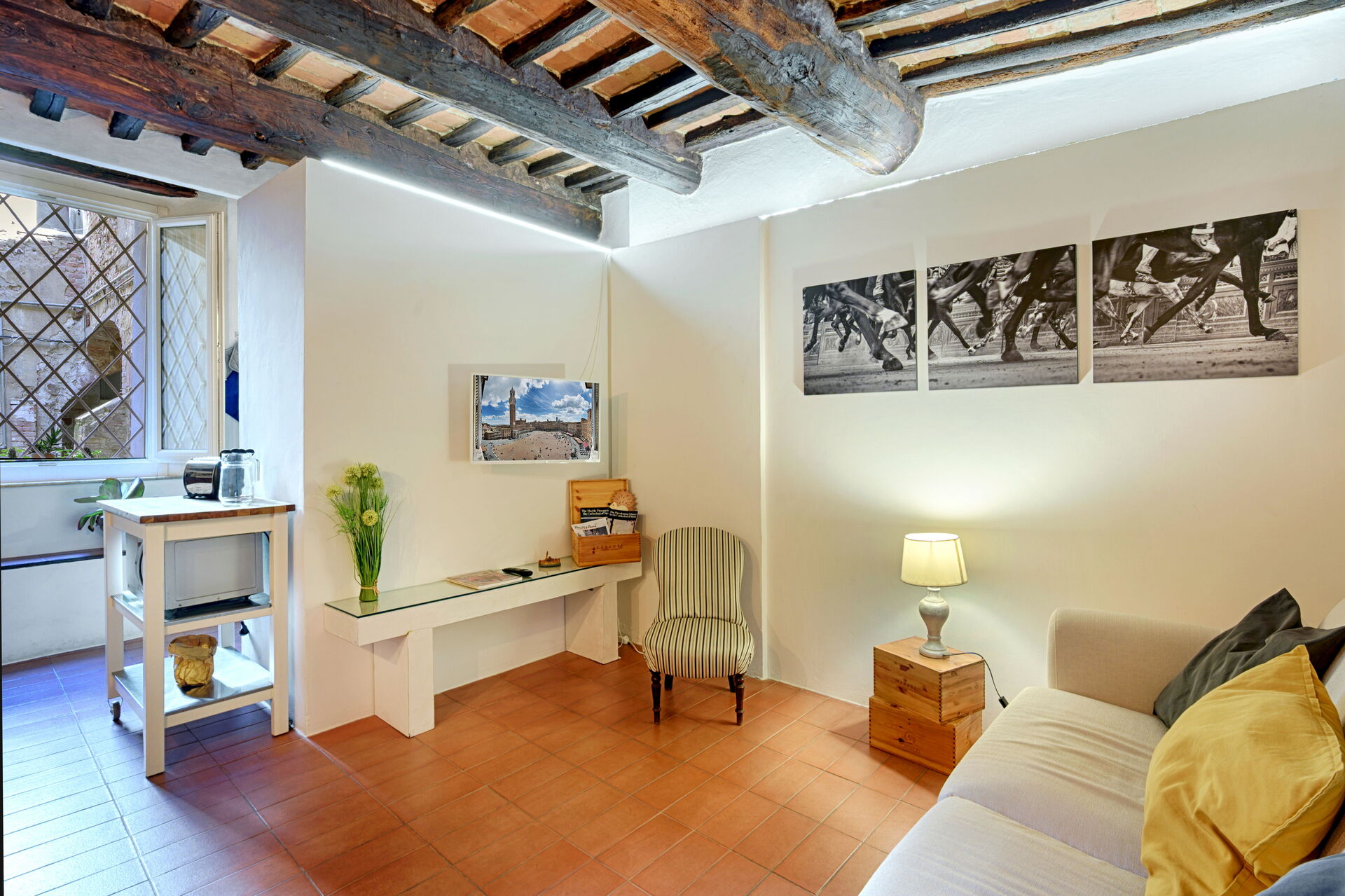 Ferieboligen er velbeliggende i nærheden af centrum af Siena, Italien, i turistområdet "Siena Og Omegn" og kun 40 km fra San Gimignano. The Silent Courtyard Retreat: Spacious 2-Bedroom S er en fin ferieudlejning (90 m2) med WIFI. Ejendommen kan rumme op til fire gæster i to soveværelser med to badeværelser.