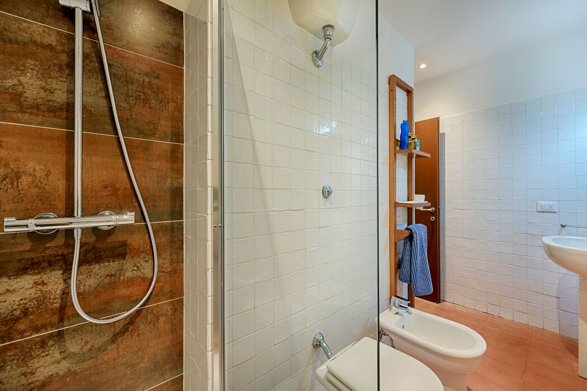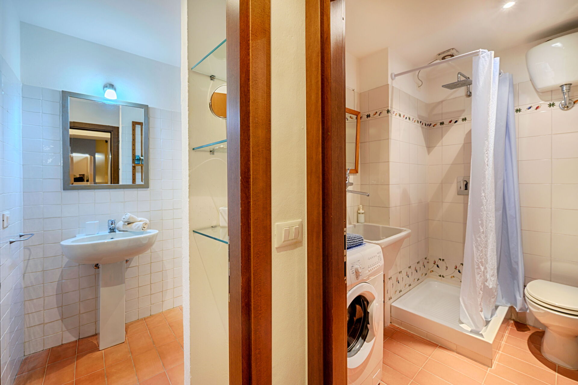 Badeværelse 1: vask, wc, bidet, bruser, hårtørrer, vaskemaskine, WIFI internet.