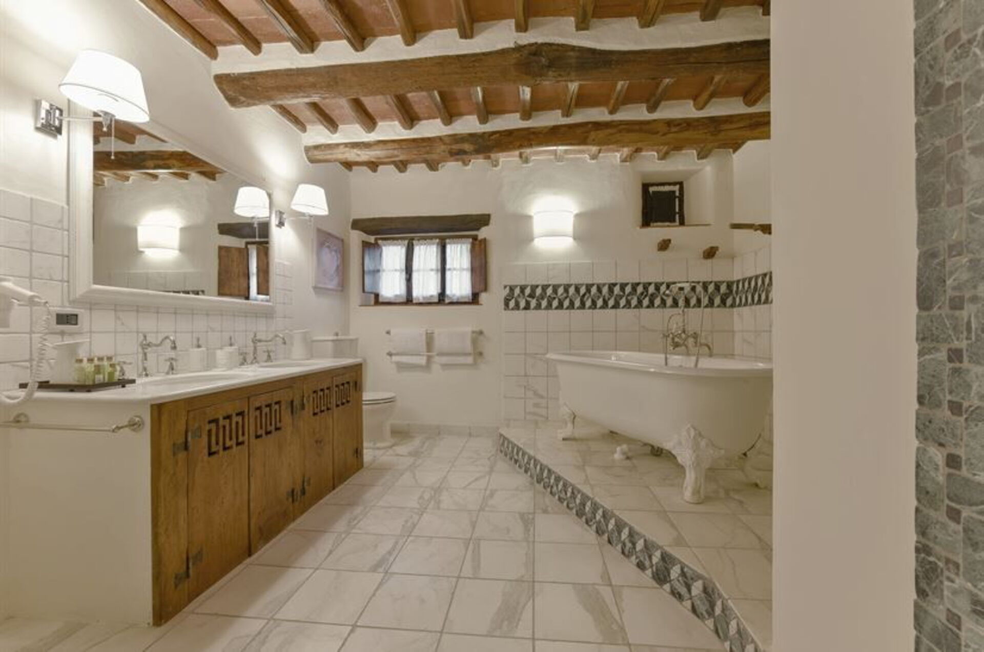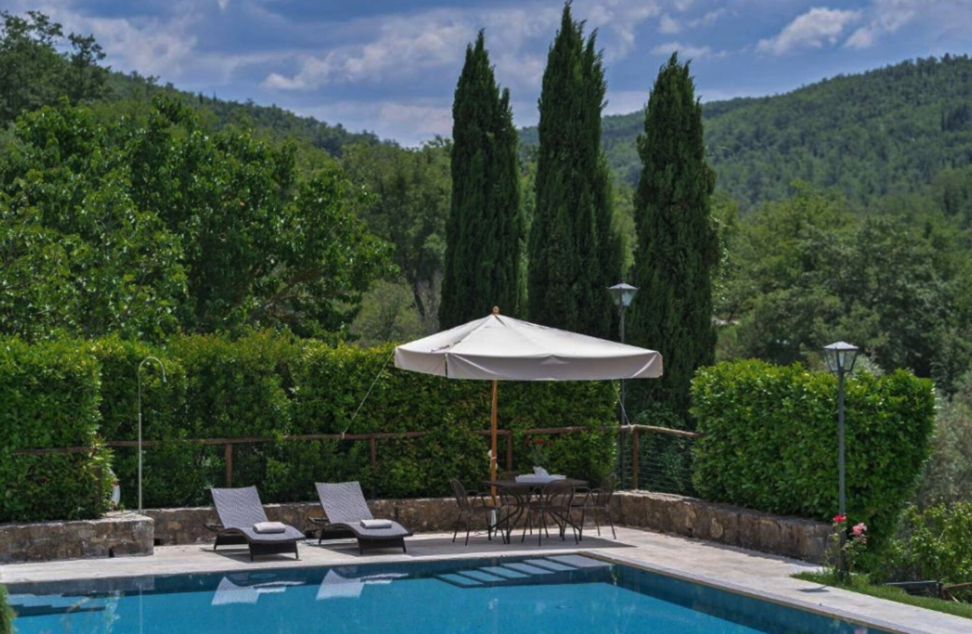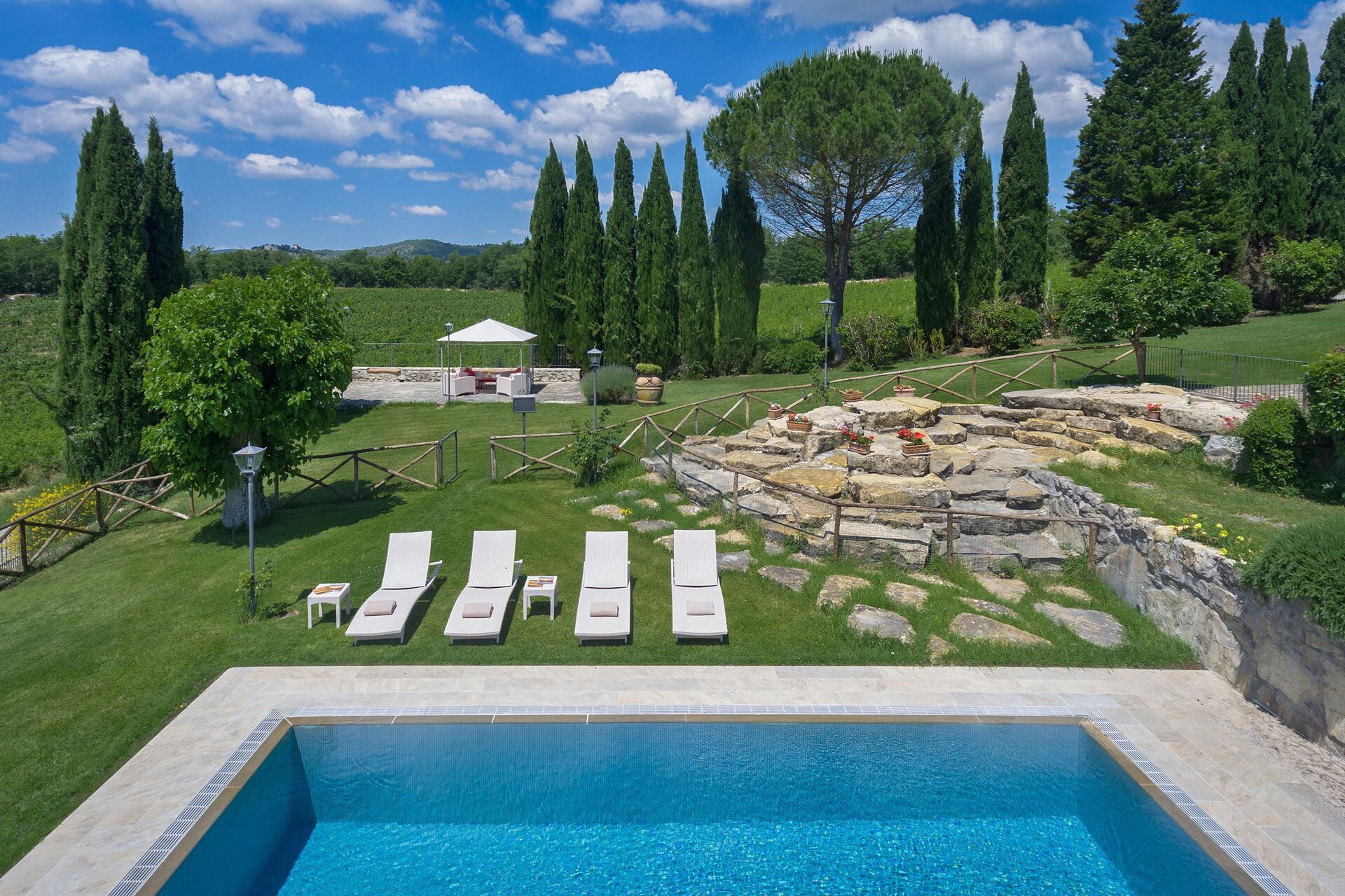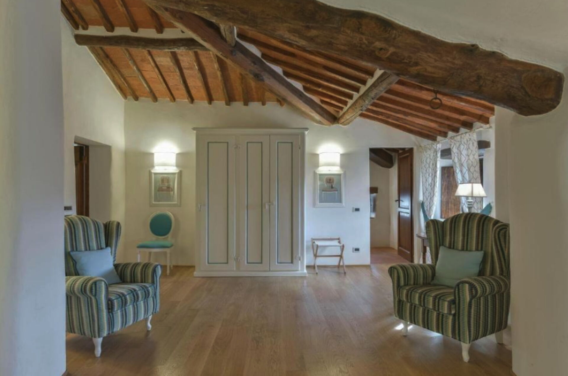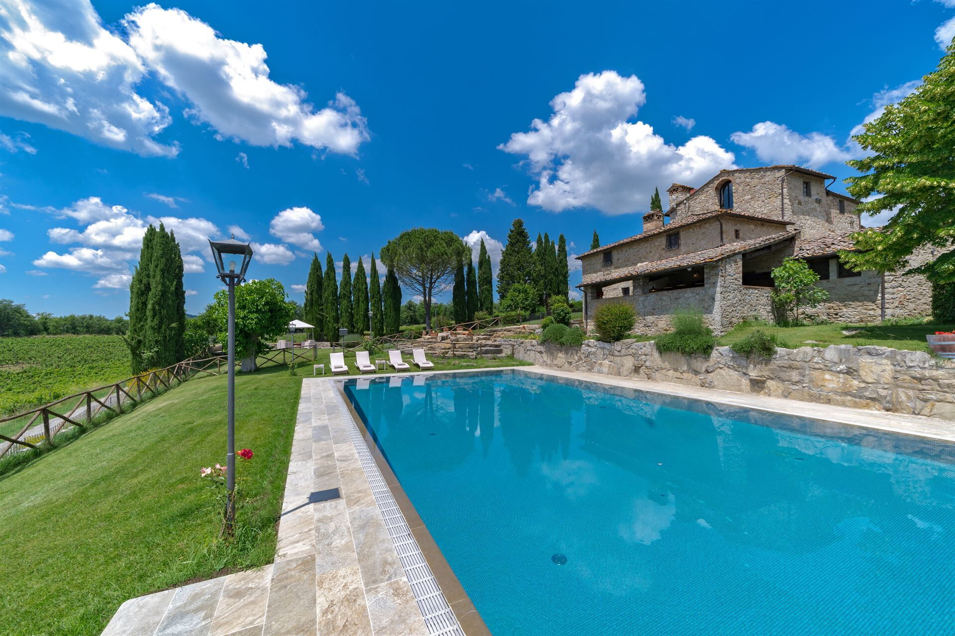 Ejendom La Dimora del Chianti Dimora: Stunning Tuscan Vill er en skøn ejendom (200 m2) som har klimaanlæg, WIFI og privat pool. Ejendommen kan rumme op til otte personer i fire soveværelser med fem badeværelser. Ejendomen er velbeliggende 5 km fra Rietine, Italien, i turistområdet "Siena Og Omegn" og kun 27 km fra Siena.