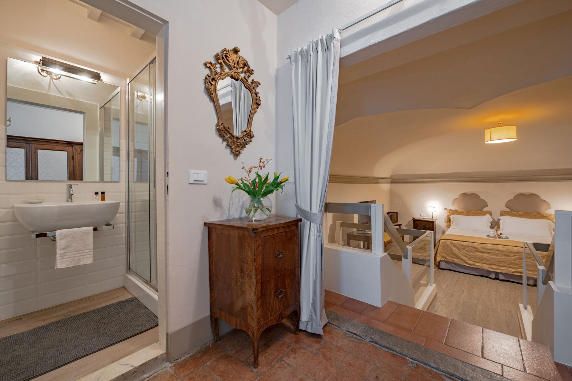 Ejendom Elegant Suite: Florence Apartment with View on Med er en flot ejendom (300 m2) som har klimaanlæg og WIFI. Ejendommen kan huse op til fire personer i to soveværelser med tre badeværelser. Elegant Suite: Florence Apartment with View on Med er beliggende i nærheden af centrum af Firenze, Italien, og kun 32 km fra Greve In Chianti i turistområdet "Firenze Og Omegn".