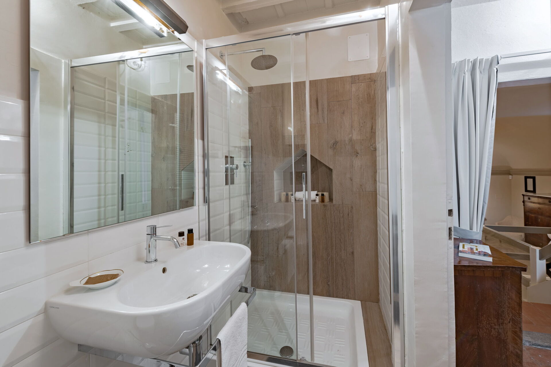 Ved ankomst vil I blive budt velkommen af ejeren eller repræsentanten og I vil finde en skøn ren og velholdt ejendom med udsigt over byen ideel til en rolig ferie i Toscana. Uanset hvordan I tilbringer dagene - med shopping, sightseeing, museumsbesøg eller bare ved at køre rundt på landet, så kan I køle ned med familie og venner , når I kommer hjem, hvilket er en perfekt måde at afslutte endnu en dejlig dag på i Toscana. At spise med venner og familie er en stor del af den toskanske kultur. Benyt det velekviperede køkken til madlavning med lokale produkter, når du er på ferie. Køkkenet indeholder kaffemaskine, mikroovn, brødrister og køleskab, samt, masser af service og bestik til op til fire personer.