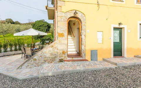 Hus "delle Ginestre", på 2 etager, ensidig tilbygget, renoveret i 2025, omgivet af træer. 4 lejligheder i ejendommen. Ved bykanten, 400 m fra centrum af Pastina, 3 km fra bymidten af Santa Luce, 100 m fra skovbryn, 18 km fra havet, 18 km fra stranden. Skift af linned (yderlige ekstras). Udskiftning af håndklæder (yderlige ekstras). Parkeringsplads ved huset. Fødevarebutik 400 m, supermarked 13 km, restaurant 400 m, busstoppested 250 m, sandstrand "Vada" 18 km, varmtvandsbad "Casciana Terme" 18 km. Nærliggende attraktioner: Pisa 45 km, Lucca 65 km, Firenze 95 km. Bemærk venligst: babyudstyr på forespørgsel (ekstra). Ejeren accepterer ikke nogen ungdomsgrupper. Salg af lokale gårdprodukter.