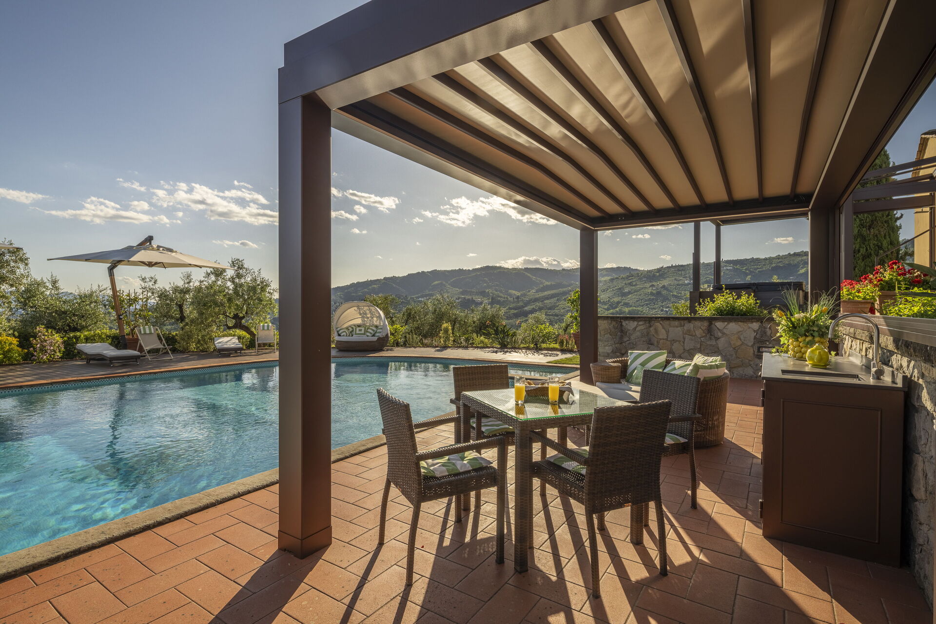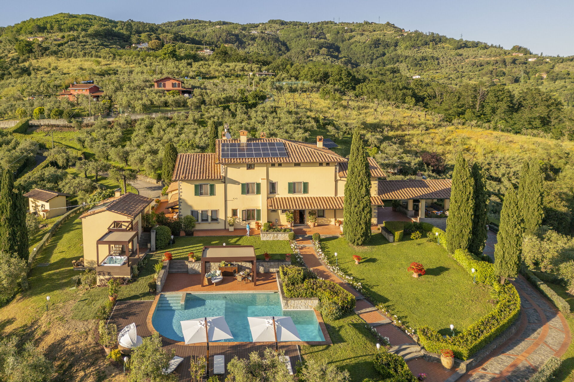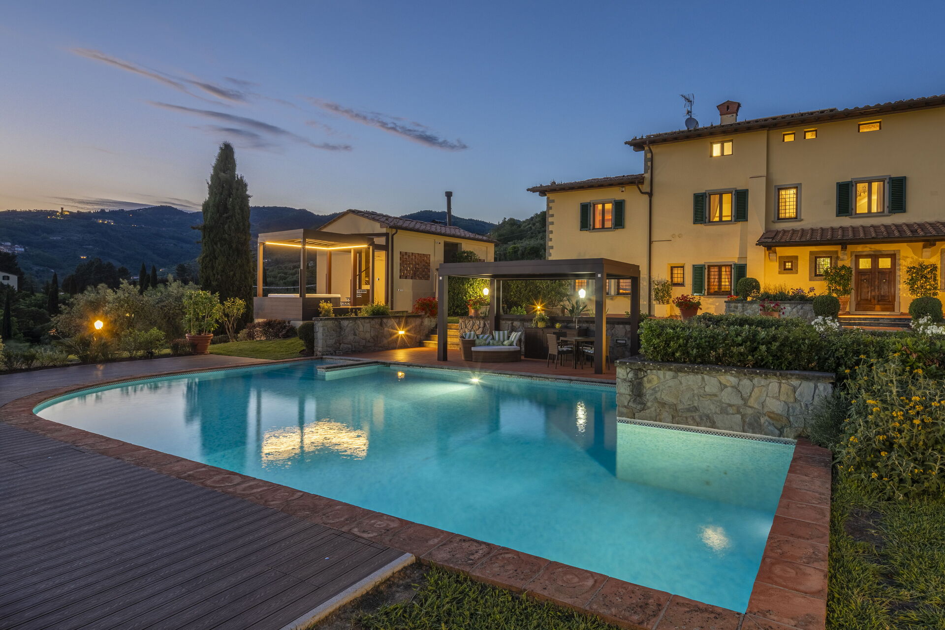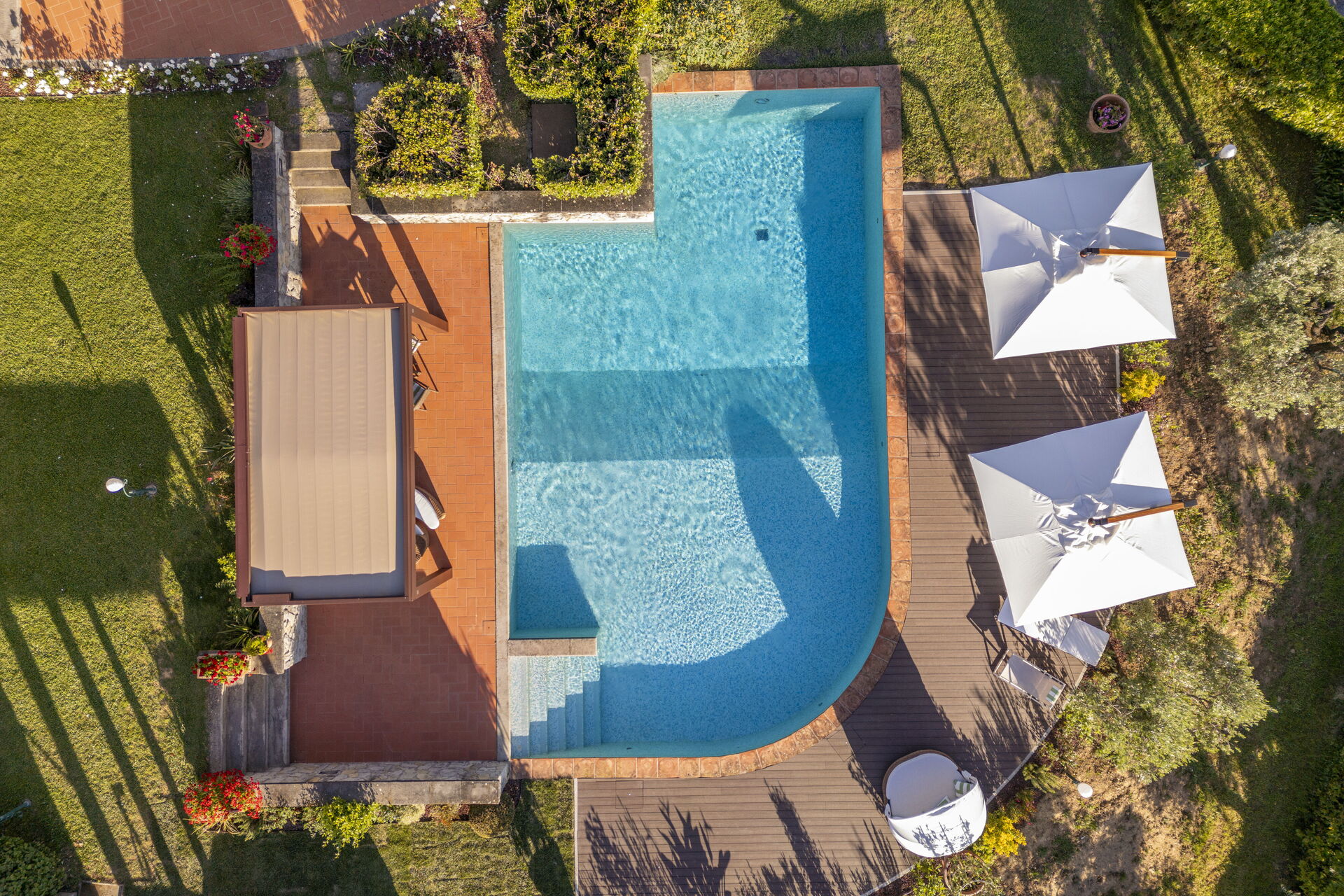 Ved ankomst til Villa Alessia Luxury vil I finde en fin ren og velholdt ejendom med udsigt over byen og bakkerne perfekt til en afslappende ferie i Toscana. Til jeres store glæde vil I finde en privat pool, hvor I kan køle ned, mens I nyder en dejlig kold drik efter en travl dag med sightseeing. Til jeres store nydelse er der på ejendommen jacuzzi, barbecue og gårdhave. Hvis I nyder at lave mad til familie og venner så er der et veludstyret køkken inkluderet kaffemaskine, mikroovn, brødrister, komfur og køleskab, samt, , samt masser af service og bestik til op til 14 personer.