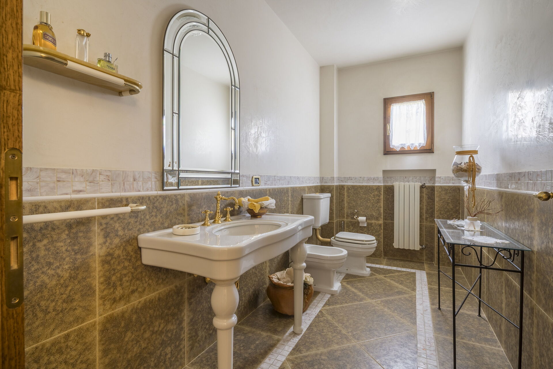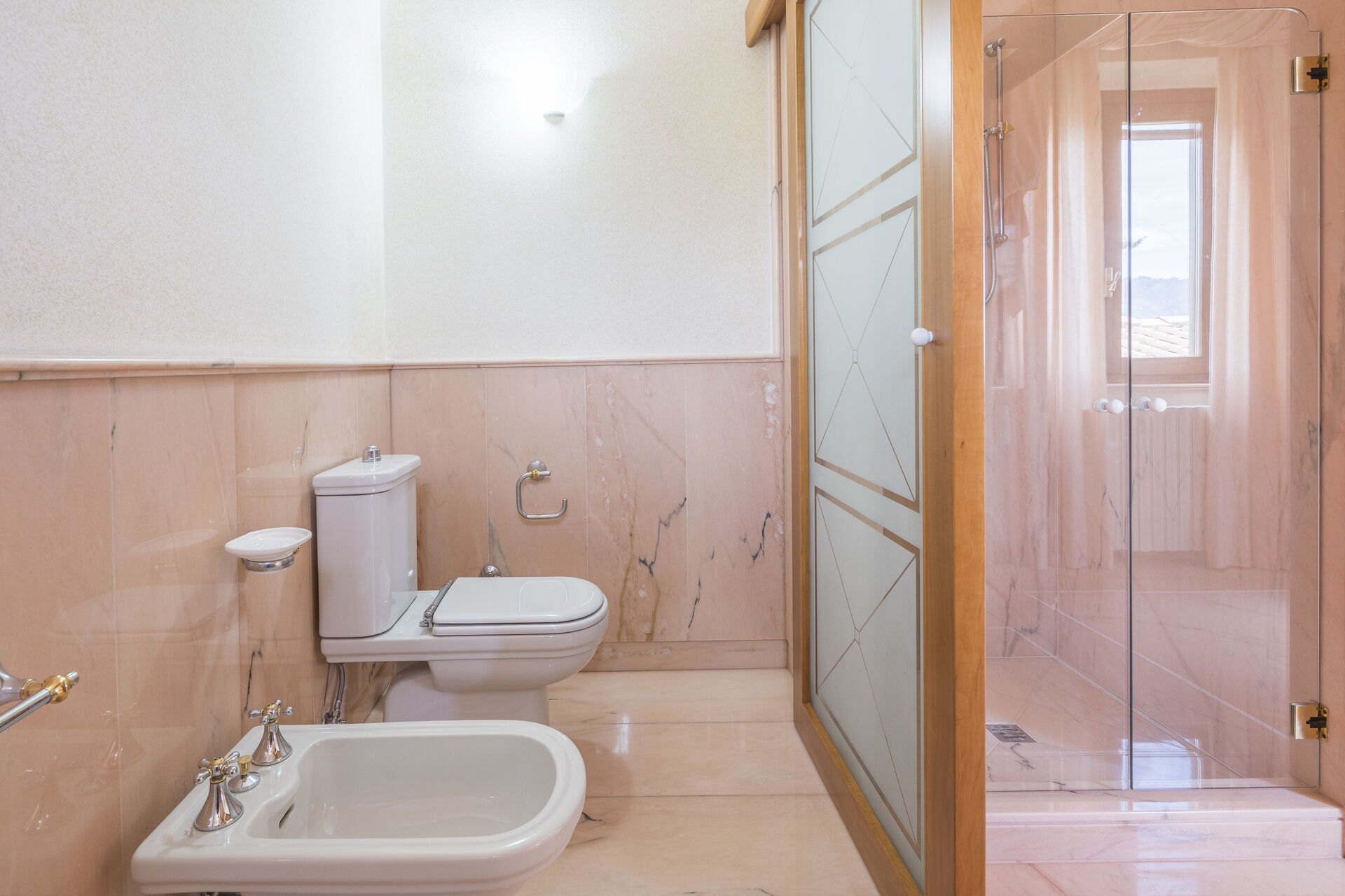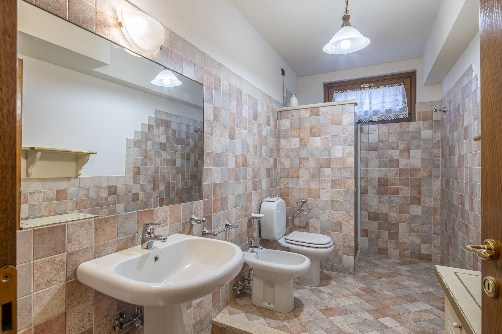 Badeværelse: vask, wc, bidet, bruser.