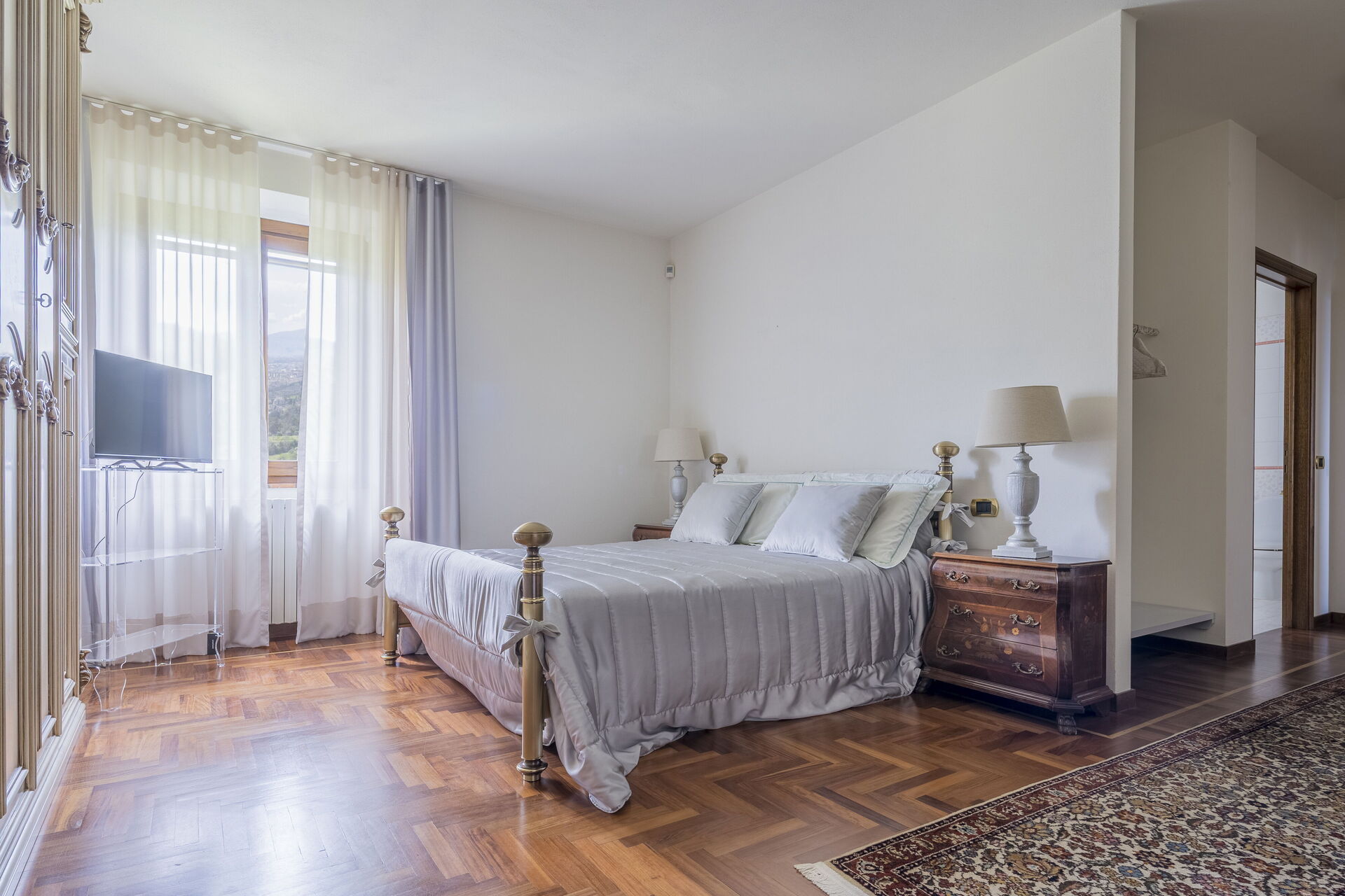 Soveværelse med bad 3: dobbeltseng, WIFI internet, klimaanlæg, tv, vask, wc, bidet, hårtørrer.