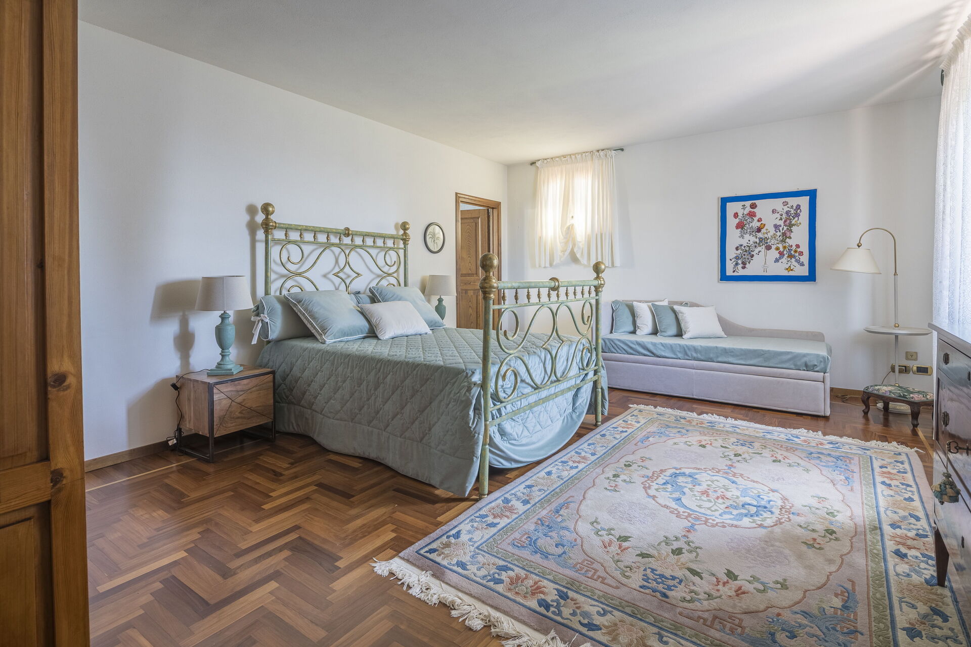 Soveværelse med bad 2: dobbeltseng, sovesofa, WIFI internet, klimaanlæg, tv, vask, wc, bidet, bruser, hårtørrer.