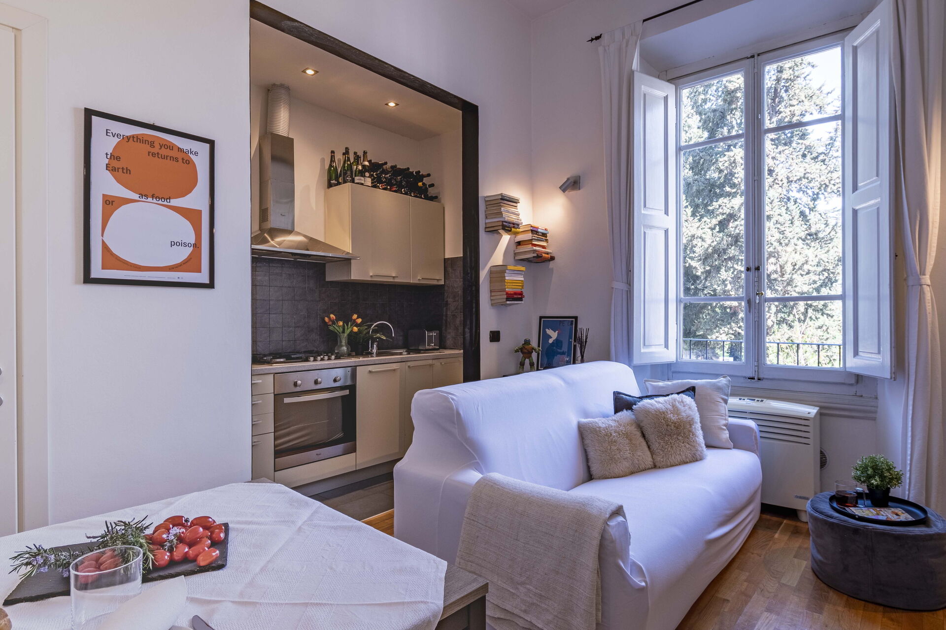 Når I ankommer, vil I møde en flot ren velholdt ejendom med udsigt over bakkerne og byen ideel til fredelig ferie i Toscana. Den store gevinst ved at leje en feriebolig i stedet for flere hotelværelser er muligheden for at slappe af med familie og venner efter en travl dag. Nyd en middag sammen akkompagneret med lidt lokal vin for at afslutte dagen. Hvis I nyder at lave mad til familie og venner så er der et veludstyret køkken inkluderet kaffemaskine, brødrister, komfur og køleskab, samt, , samt masser af service og bestik til op til fire personer.