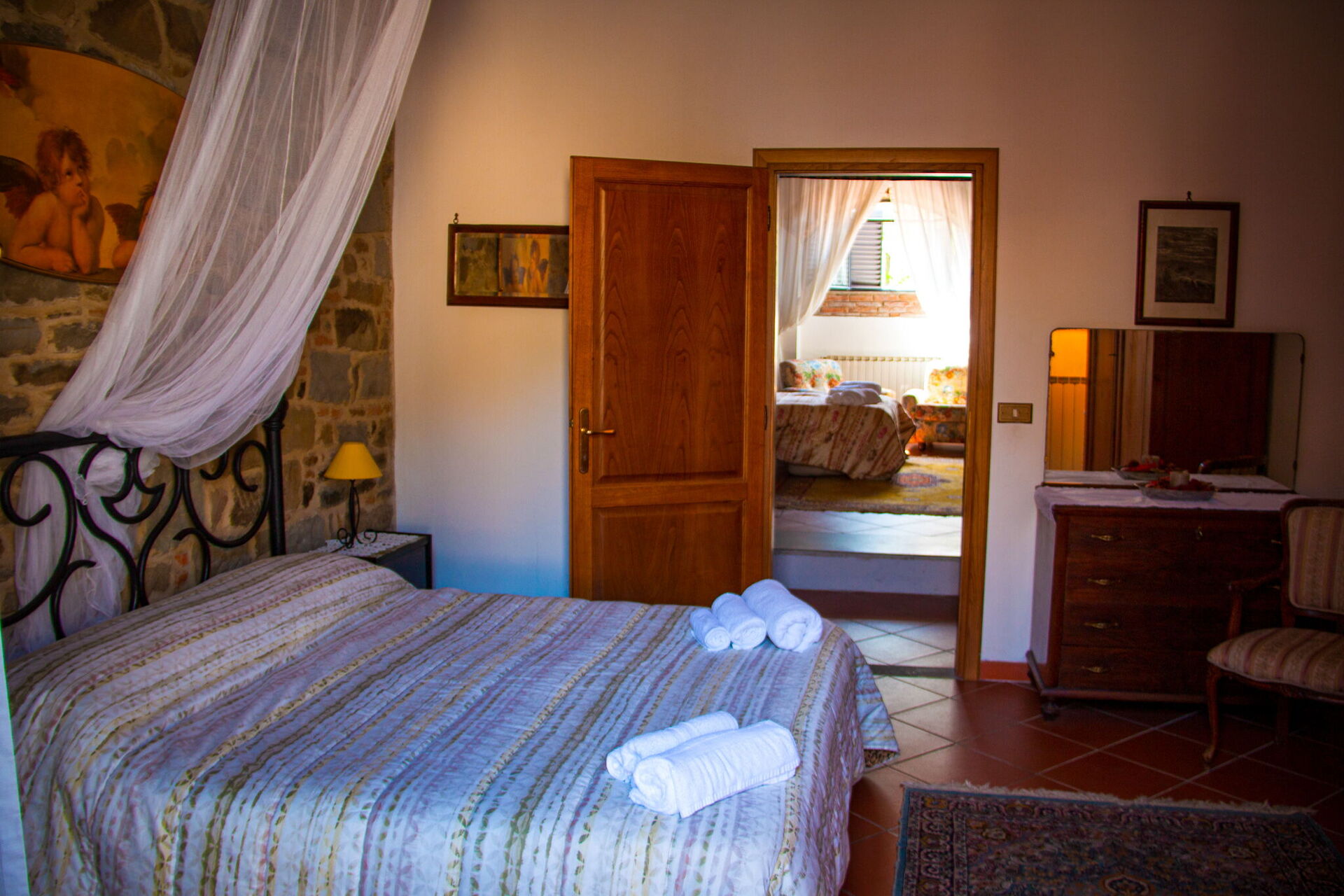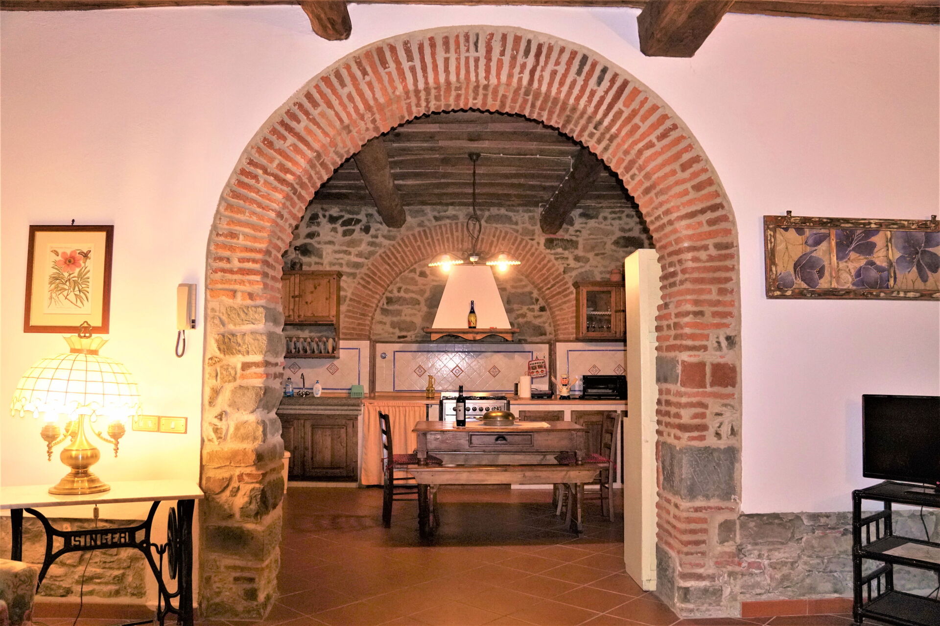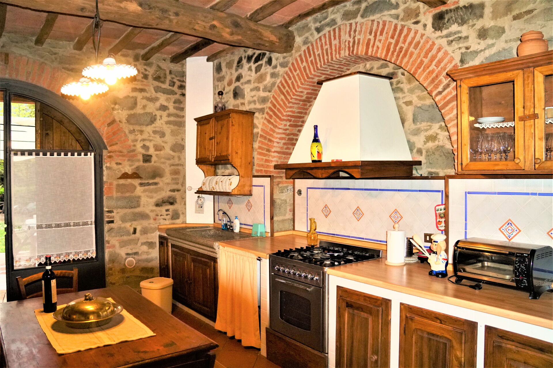 Hvis I nyder at lave mad til familie og venner så er der et veludstyret køkken med mikroovn, brødrister og køleskab , samt masser af service og bestik til op til fire personer. Spis 'al fresco' som en ægte toskaner. Den fuldt møblerede veranda er det perfekte sted for at nyde sit måltid, familien og det dejlige toskanske vejr.