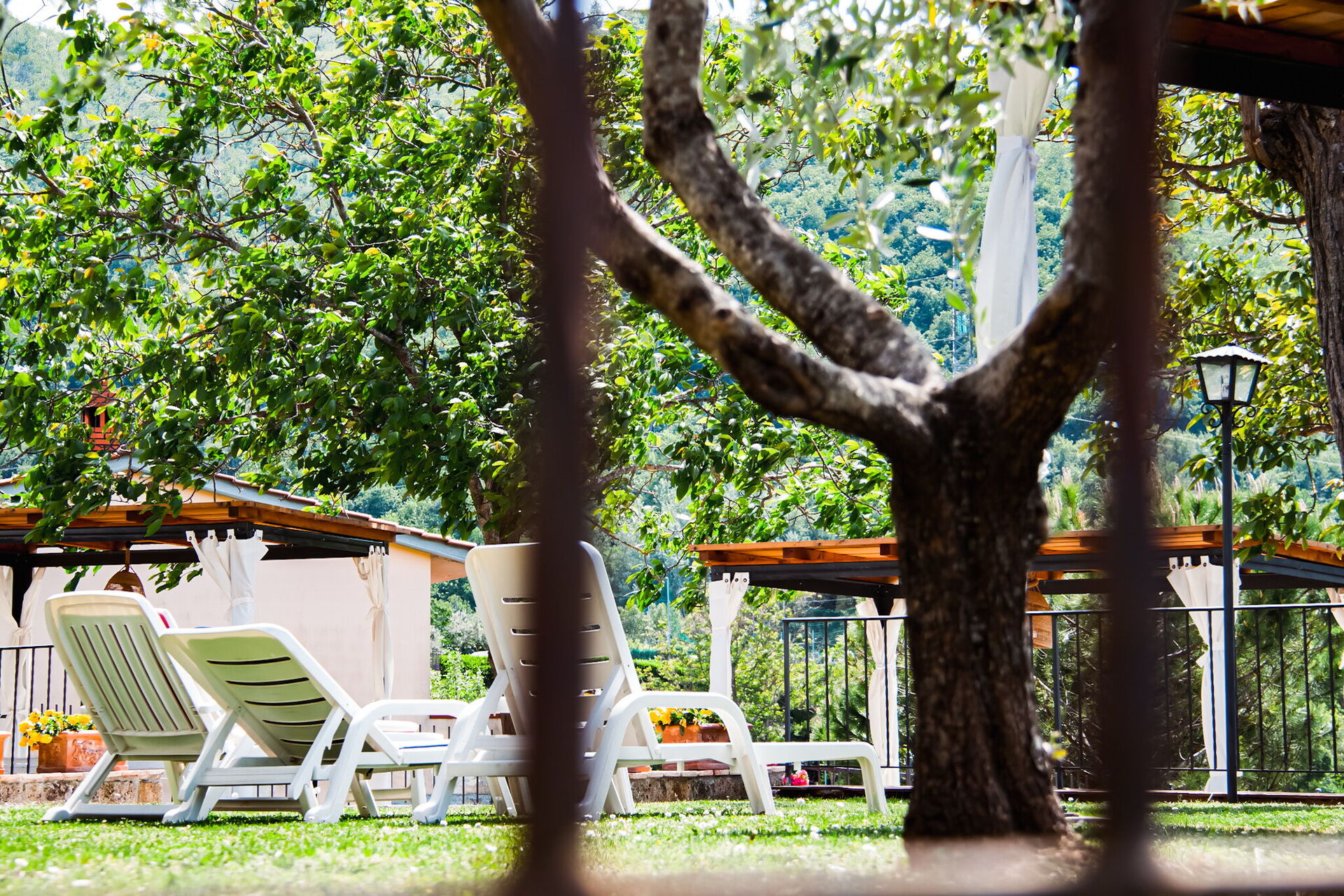 Solterrasse (100 m2): WIFI internet, bruser, havemøbel, liggestol.