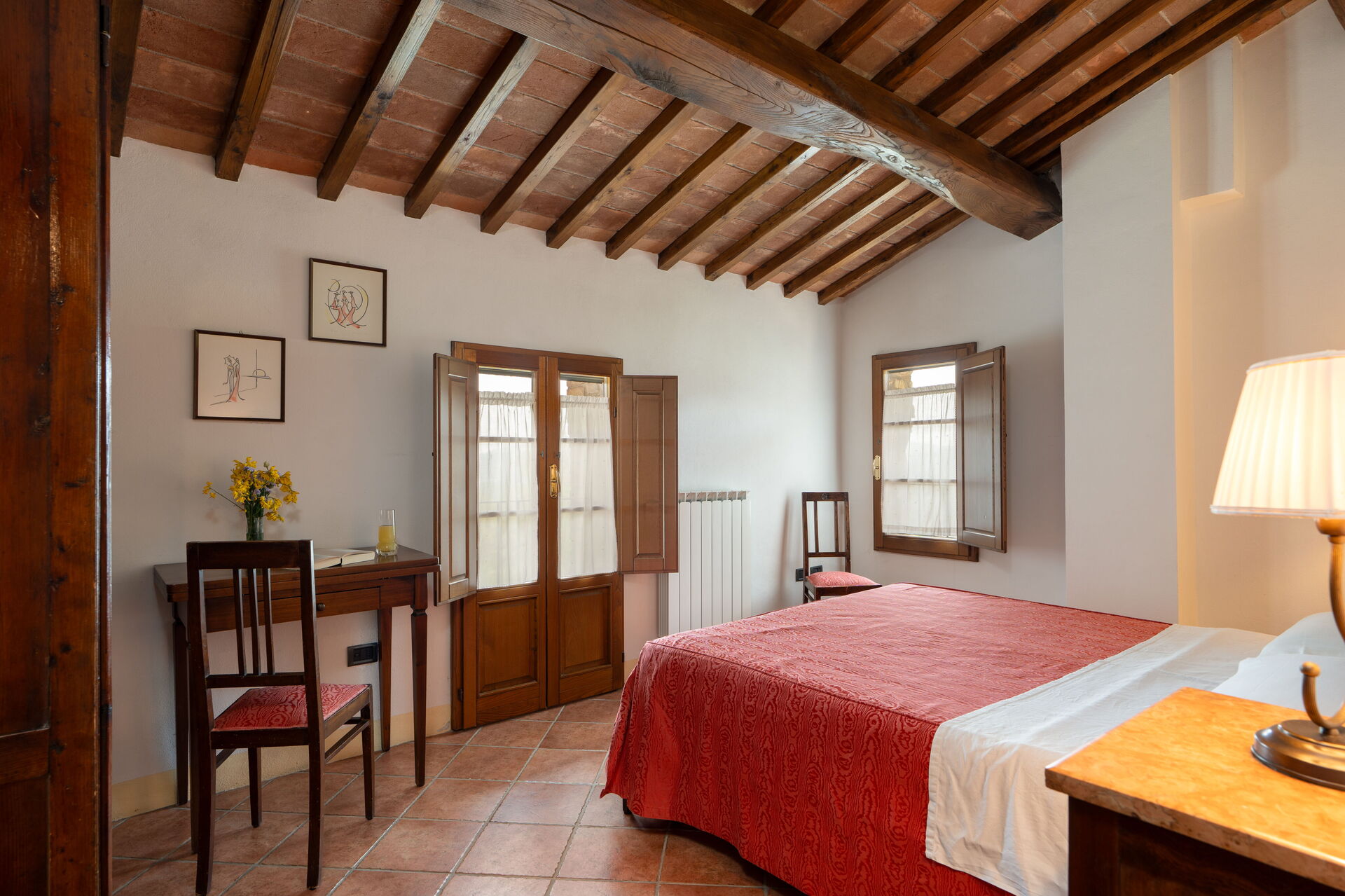 Soveværelse med bad: dobbeltseng (bredde: 1.45m, længde: 1.9m), WIFI internet, myggenet, wc, bidet, bruser, hårtørrer.