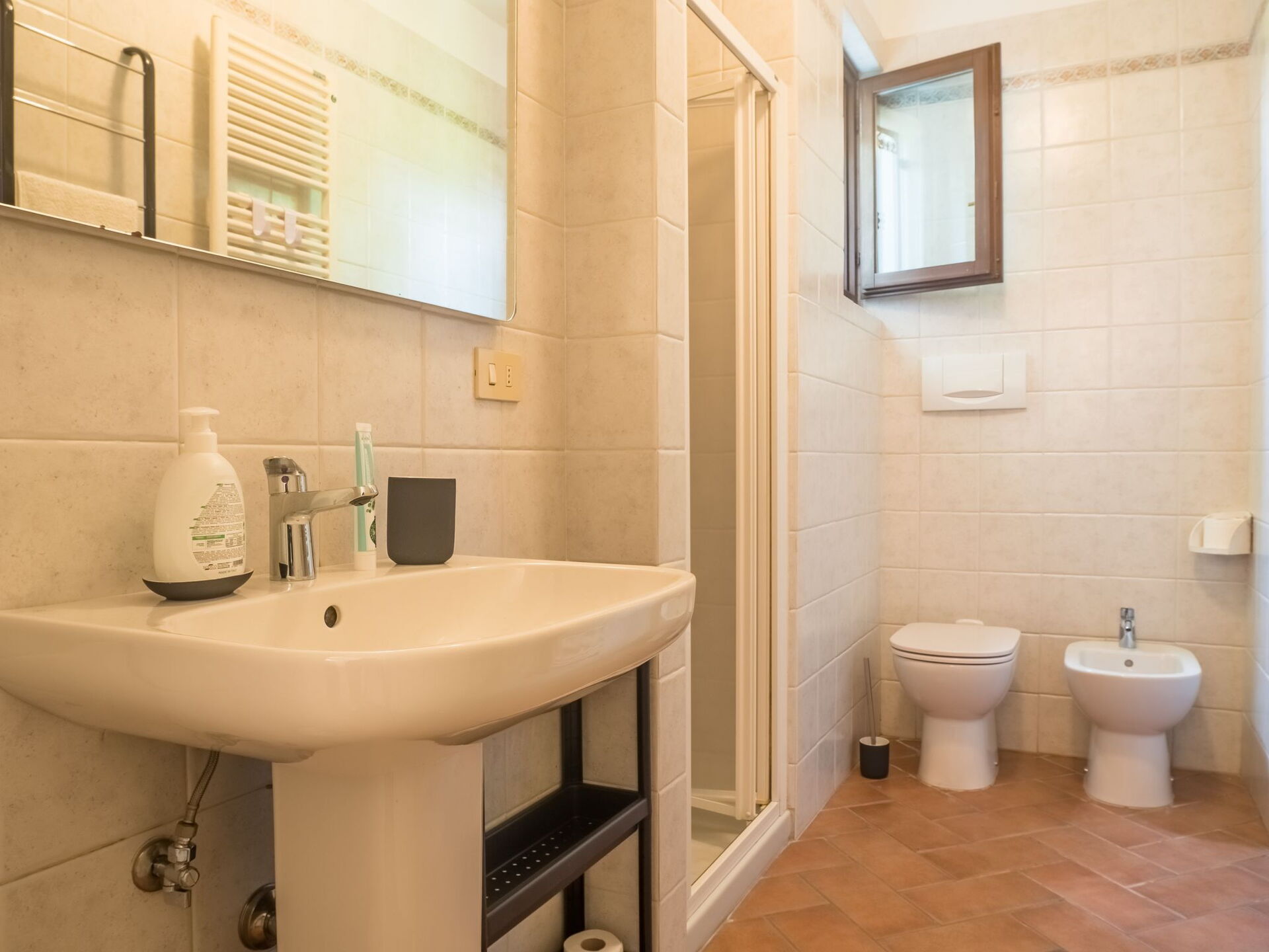 Two complete bathrooms with toilet, shower, washbasin and bidet.