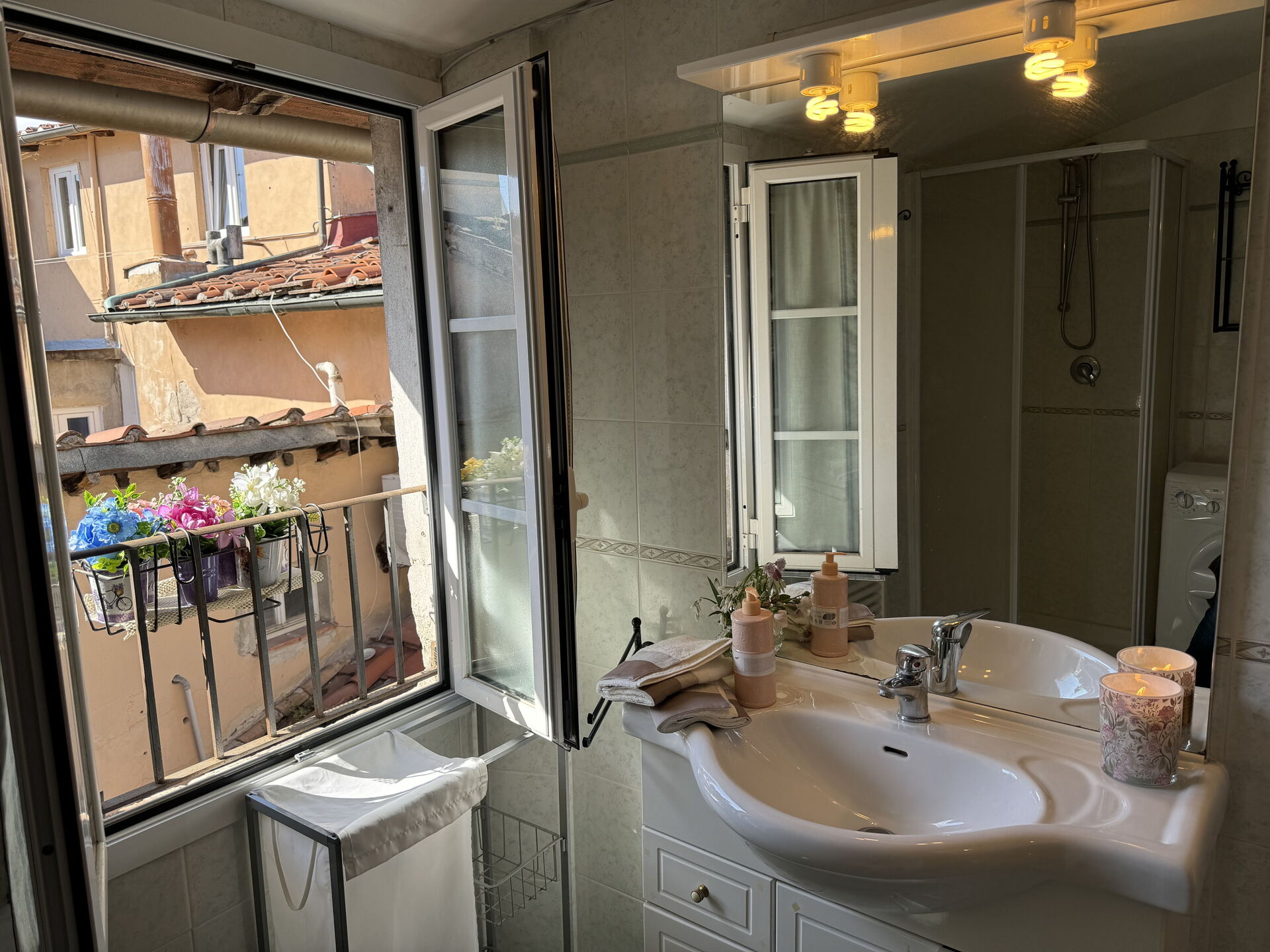 Badeværelse: vask, wc, bidet, bruser, vaskemaskine, WIFI internet.