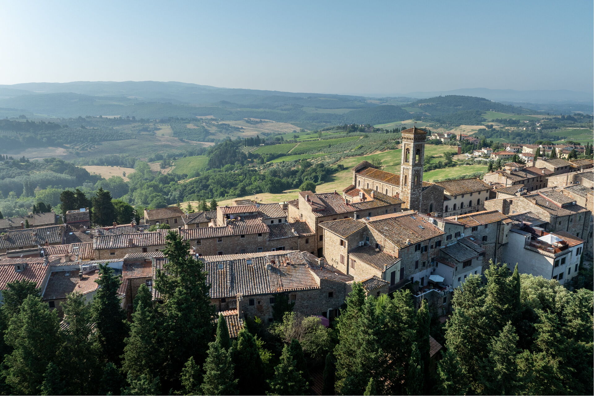 Feriebolig opdelt i enheder med WIFI, pool, TV, gårdhave, panorama udsigt, nær ved Greve In Chianti