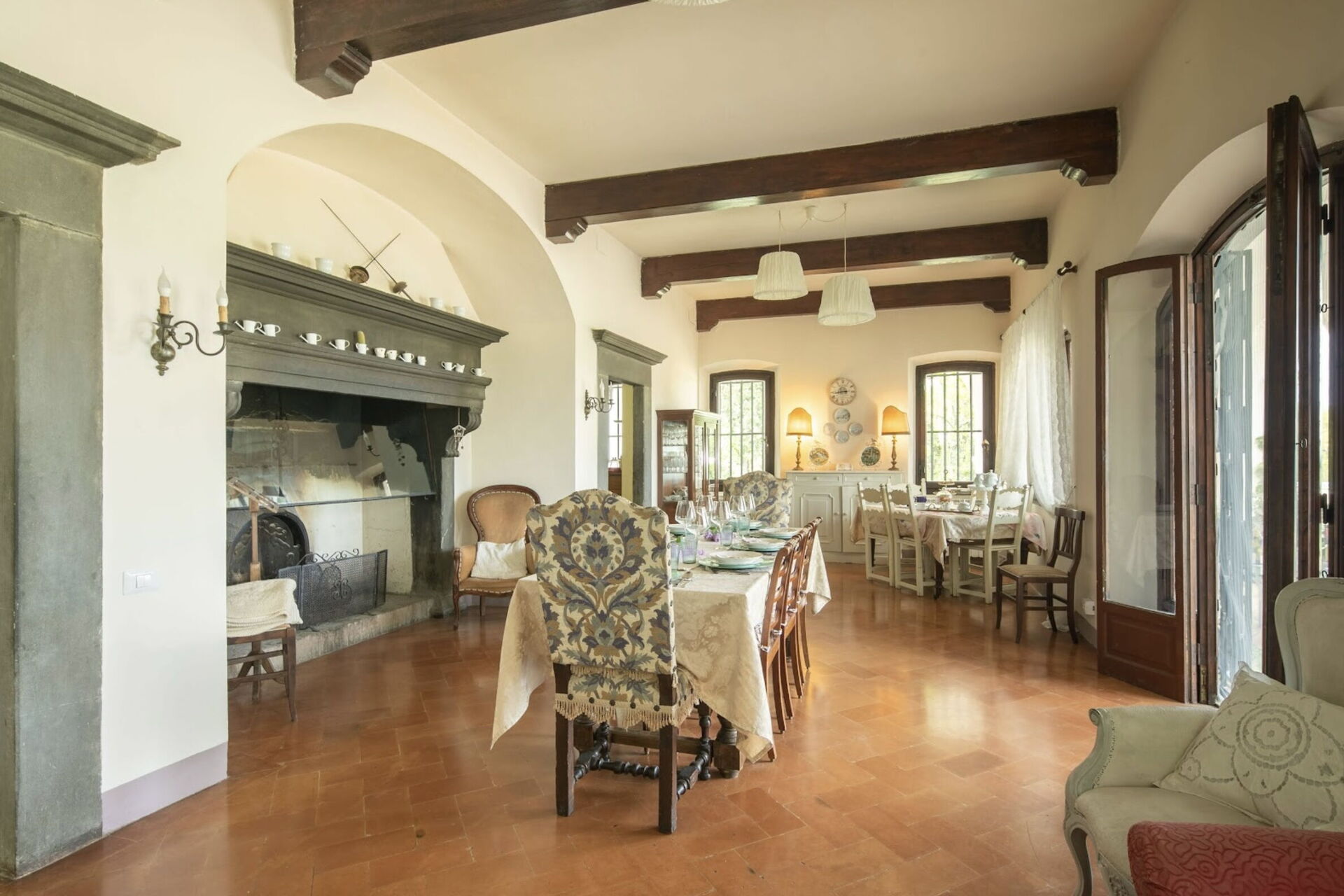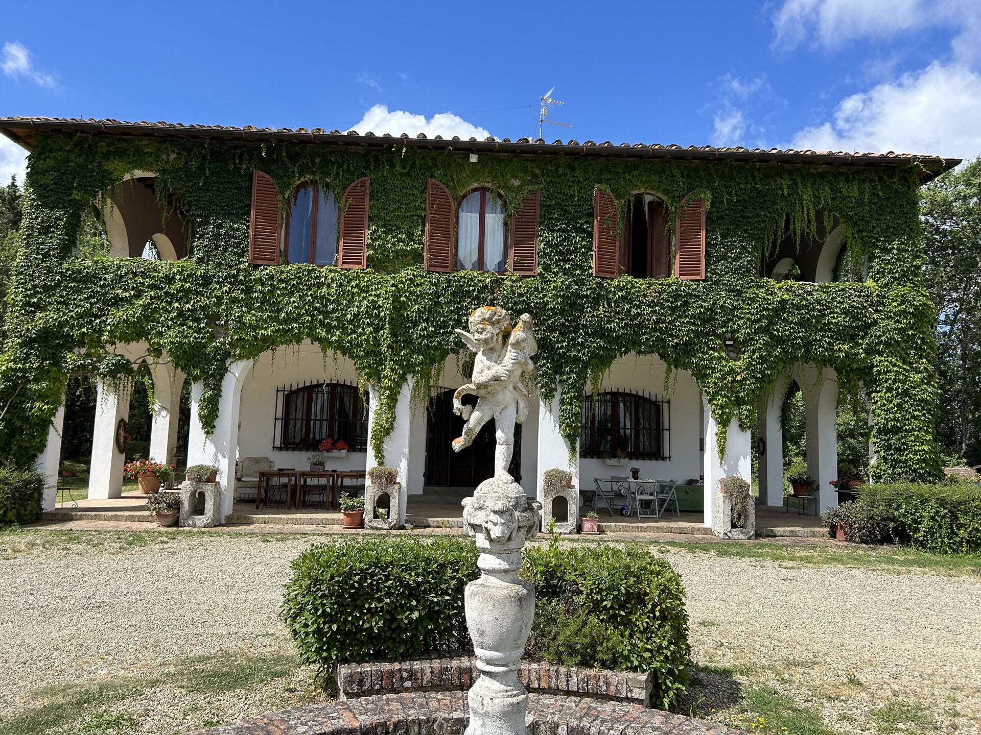 Når I ankommer, vil I møde en flot ren velholdt ejendom med udsigt over bakkerne perfekt til rolig ferie i Toscana. Til jeres store glæde vil I finde en privat pool, hvor I kan køle ned, mens I nyder en dejlig kold drik efter en travl dag med museumsbesøg. Udenfor vil I finde gårdhave og grill. At nyde et måltid med venner og familie er en kæmpe del af den toskanske kultur. Benyt det velekviperede køkken til madlavning med lokale produkter, når du er på ferie. Køkkenet indeholder kaffemaskine, mikroovn, brødrister, komfur og køleskab, samt, masser af service og bestik til op til 14 personer. Spis 'al fresco' som en ægte toskaner. Den fuldt møblerede veranda er det ideele sted for at nyde sit måltid, familien og det flotte toskanske vejr.