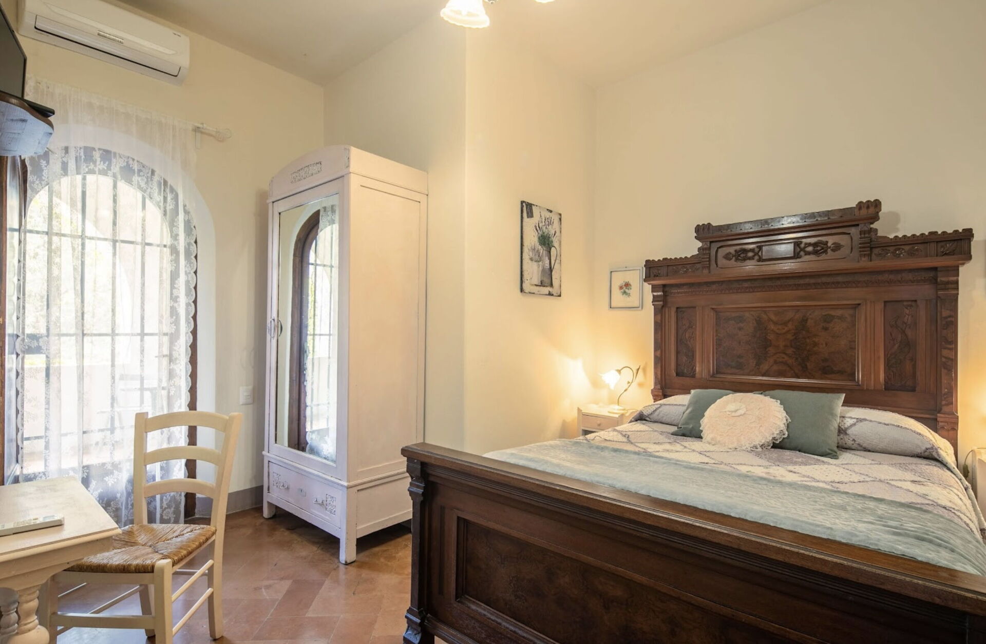 Soveværelse med bad 1 (1 m2): dobbeltseng, WIFI internet, klimaanlæg, vask, wc, bidet, bruser, hårtørrer.