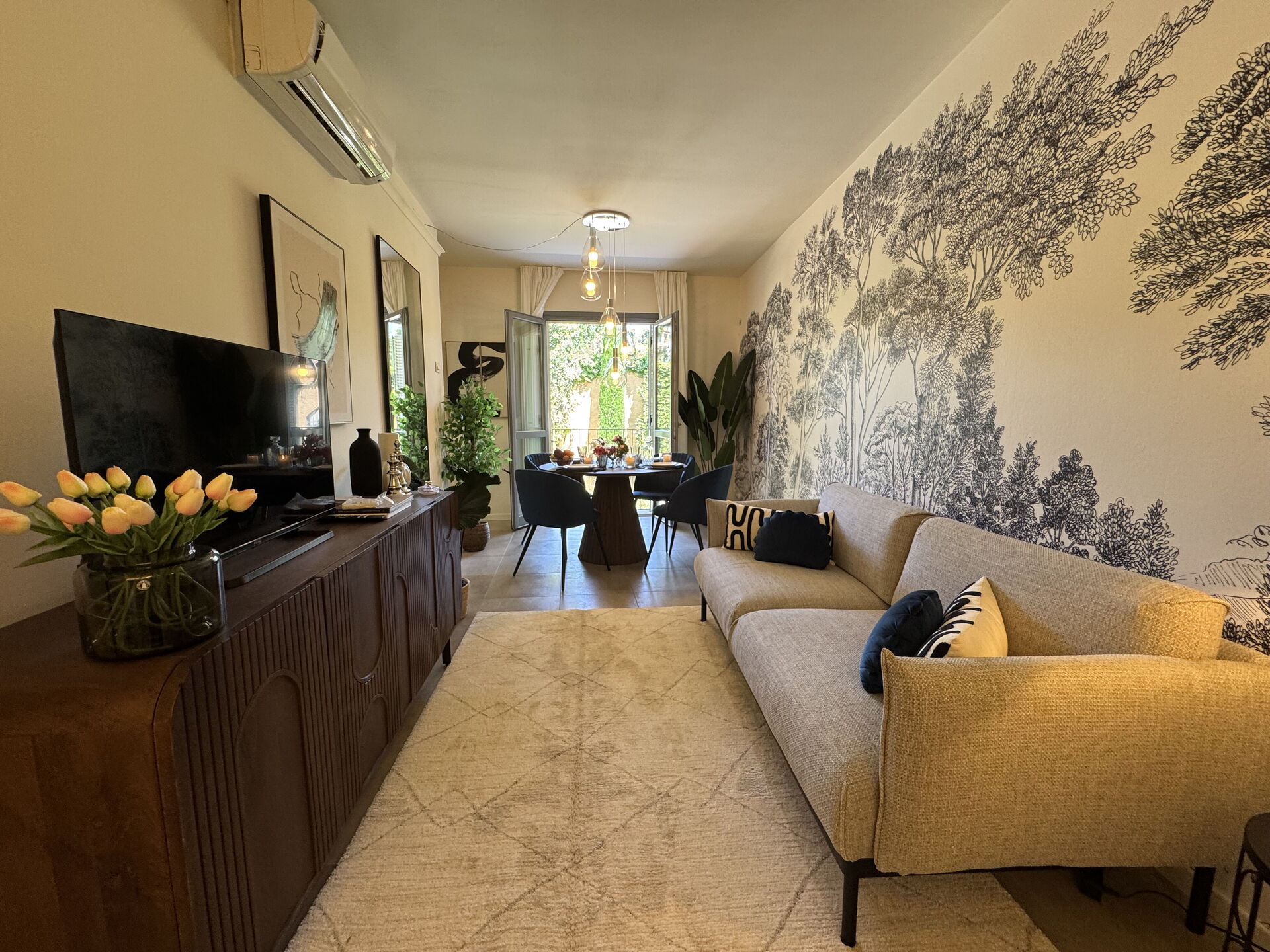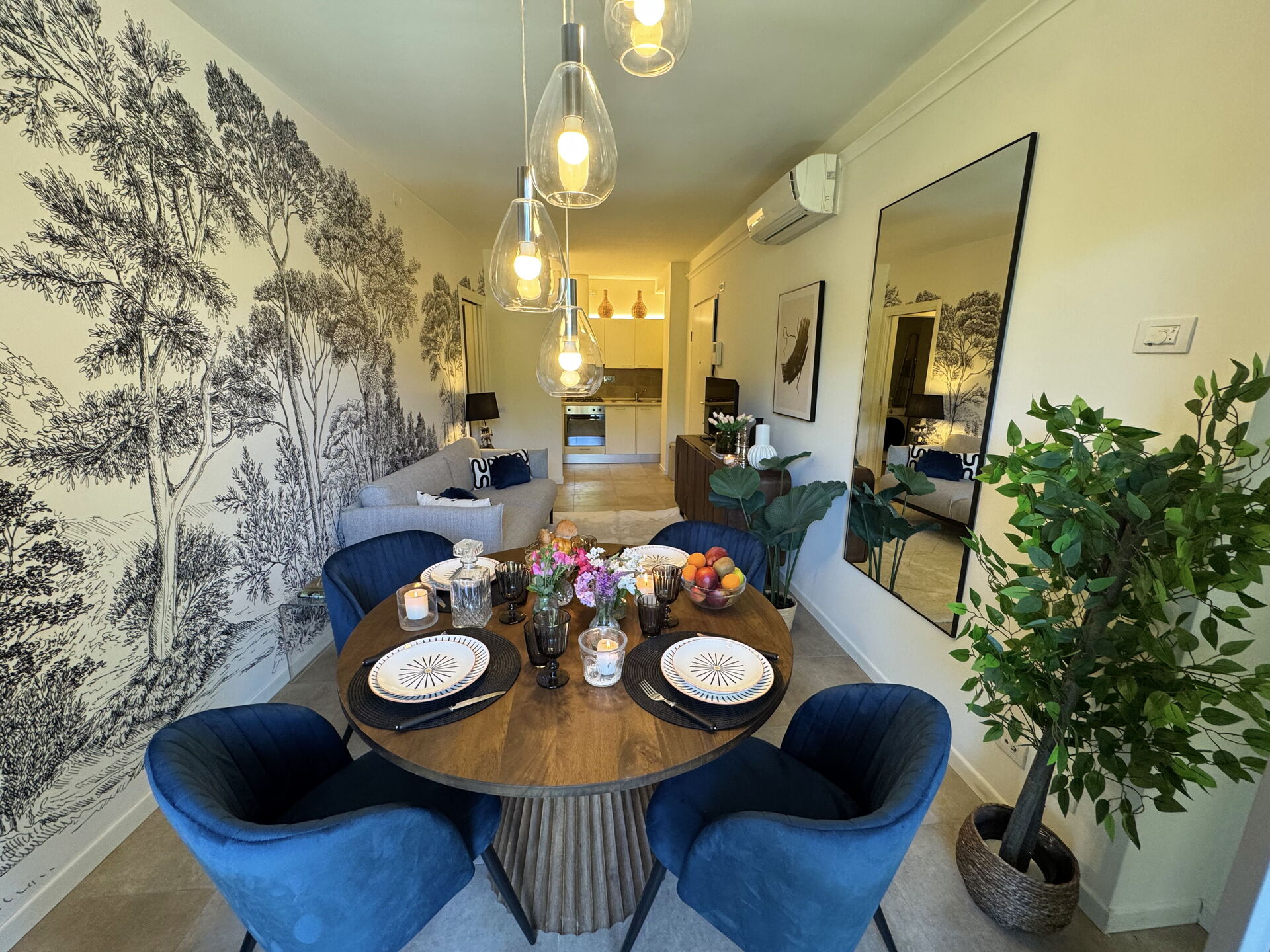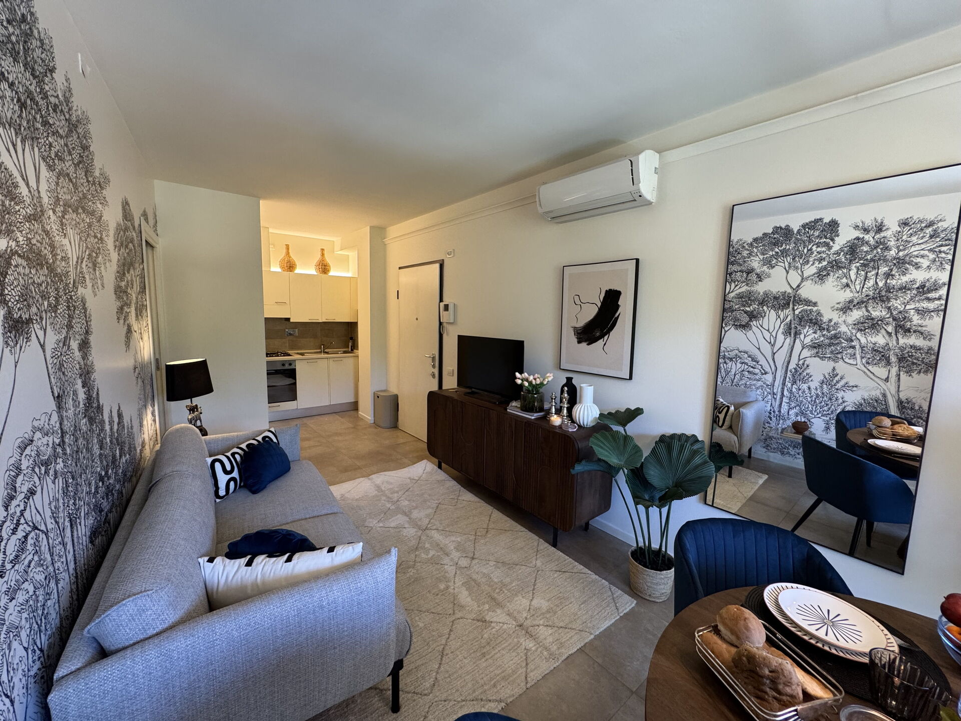 Køkken - stue: veludstyret køkken, spisebord, opvaskemaskine, køleskab, fryser, ovn, brødrister, italiensk kaffemaskine, vaskemaskine, sofa, klimaanlæg, tv.