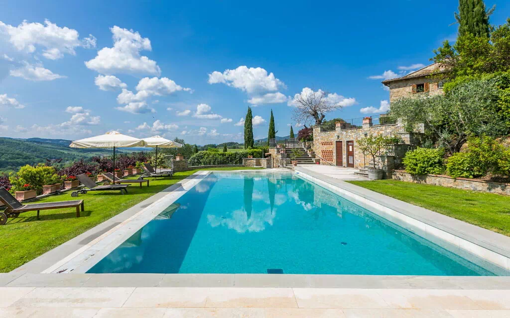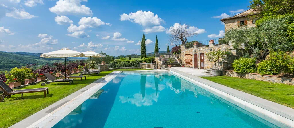 Casa Padronale 989.1 5 Sengepladser 2 Soveværelser 3 Badeværelser fra€ 377 pr. nat Il Fienile 989.2 6 Sengepladser 3 Soveværelser 3 Badeværelser fra€ 478 pr. nat Beskrivelse af Ejendommen Bondegård i en vingård "Savignola Paolina", bygget i 1780, omgivet af vingård. Ejendom bestående af hovedhus og udhus, 3 km fra bymidten af Greve in Chianti, 35 km fra centrum af Firenze, 46 km fra bymidten af Siena, høj beliggenhed på en bakke, i det grønne. Til medbenyttelse: have i forskellige niveauer, 1'000 m2 (indhegnet), pool indhegnet (16 x 6 m, 120 - 200 cm dyb, Sæsonbestemt tilgængelighed: 04.Apr. - 30.Sep.). Udendørs brus, havemøbler, Underholdning af poolen af ejeren/gartneren. I huset: reception, restaurant, massage (ekstra). Kok muligt (ekstra). Morgenmad og halvpension muligt efter aftale (ekstra). Tilkørsel til til huset (200 m natursti). Parkeringsplads på grunden. Indkøbsforretning 3 km, supermarked 3 km, busstoppested 3300 km. Golfbane (18 hul) 20 km. Nærliggende attraktioner: Panzano in Chianti 8 km, Badia a Passignano 12 km, Radda in Chianti, San Donato 18 km, Castellina in Chianti 20 km, Gaiole in Chianti 30 km, San Gimignano 46 km. Bemærk venligst: velegnet for familier. Velegnet till arrangementer. Madlavningskurser bestilles på forespørgsel. Salg af lokale gårdprodukter. Ejer bor på sammen grund. Faciliteter Swimmingpool Internet Internet Wifi Nær restaurant Kok Babyseng Nær spa Morgenmad Parkering Afdragsordning Sted Greve in Chianti, Toscana, Italien Indlæser Nemt & Sikkert Betroet af over 300.000 gæster verden over, mange af dem tilbagevendende kunder. Se hvorfor det er det rigtige valg at booke med Easy Reserve. Hvorfor booke hos os? Easy Reserve Firmaanmeldelser 4.77 /5 Fremragende 3516 Firmaanmeldelser Personlig assistance Kontakt os venligst for at få hjælp til at vælge en villa til din rejse til det smukke Toscana. US: 1-800-761-6681 Ring Os BE: +32-7-848-3140 DK: +45-7876-8381 FR: +33-9-7512-2847 DE: +49-322-1421-9934 IE: +353-1-699-4137 IT: +39-055-535-7096 NL: +31-85-273-7065 ES: +34-900-933-285 GB: +44-560-065-6722 GB: 0-800-047-0256 US: 1-800-761-6681 US: +1-859-300-0072 Kontakt en villaspecialist Prisgaranti Ved leje af en villa i Italien garanterer vi for, at du betaler den laveste pris on-line. Simpel, problemfri garanti. Tusinder af tilfredse kunder. Prismatch Toscanske ferieboliger ud fra type Luksusvillaer i Toscana Lejligheder i Toscana Toscana ferieudlejning Toscanske villaer og byhuse udfra beliggenhed Villaer i Arezzo Villaer i Chianti Villaer i Cortona Villaer i Firenze Villaer i Lucca Villaer i Montalcino Villaer i Pisa Villaer i San Gimignano Villaer i Siena Villaer på den toscanske kyst Villaer i Viareggio