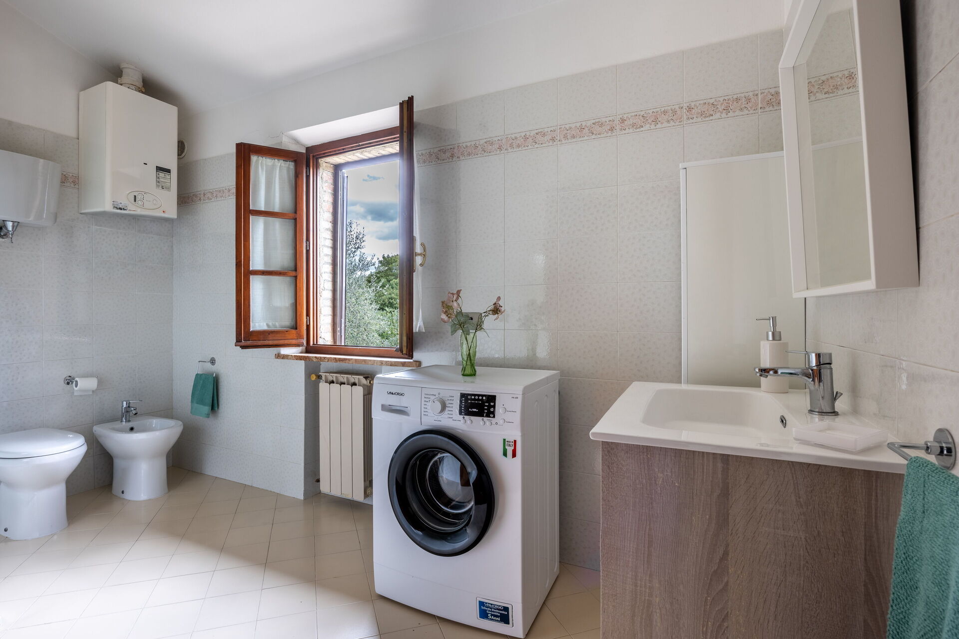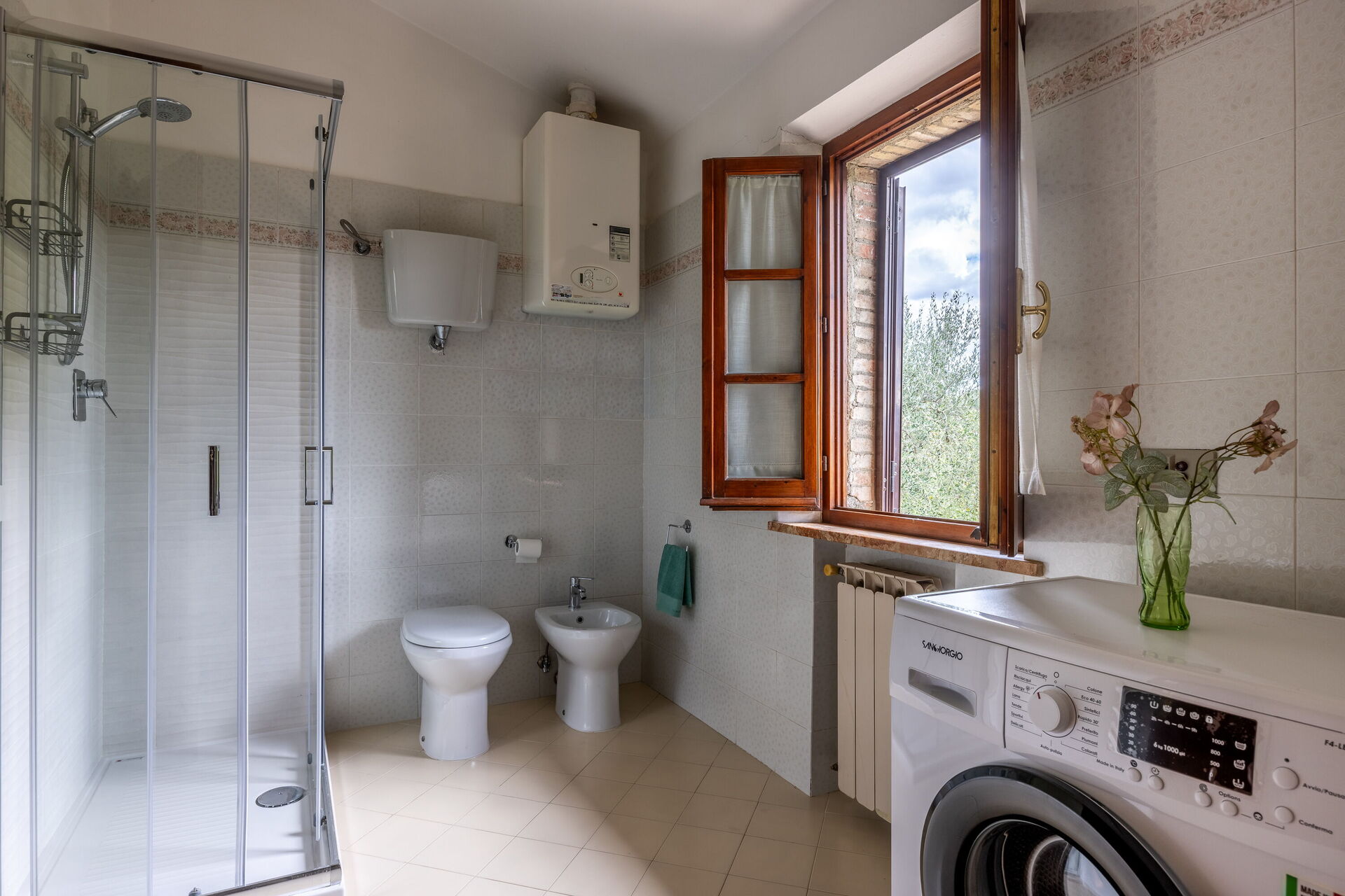 Badeværelse: vask, wc, bidet, bruser, hårtørrer, vaskemaskine, WIFI internet.