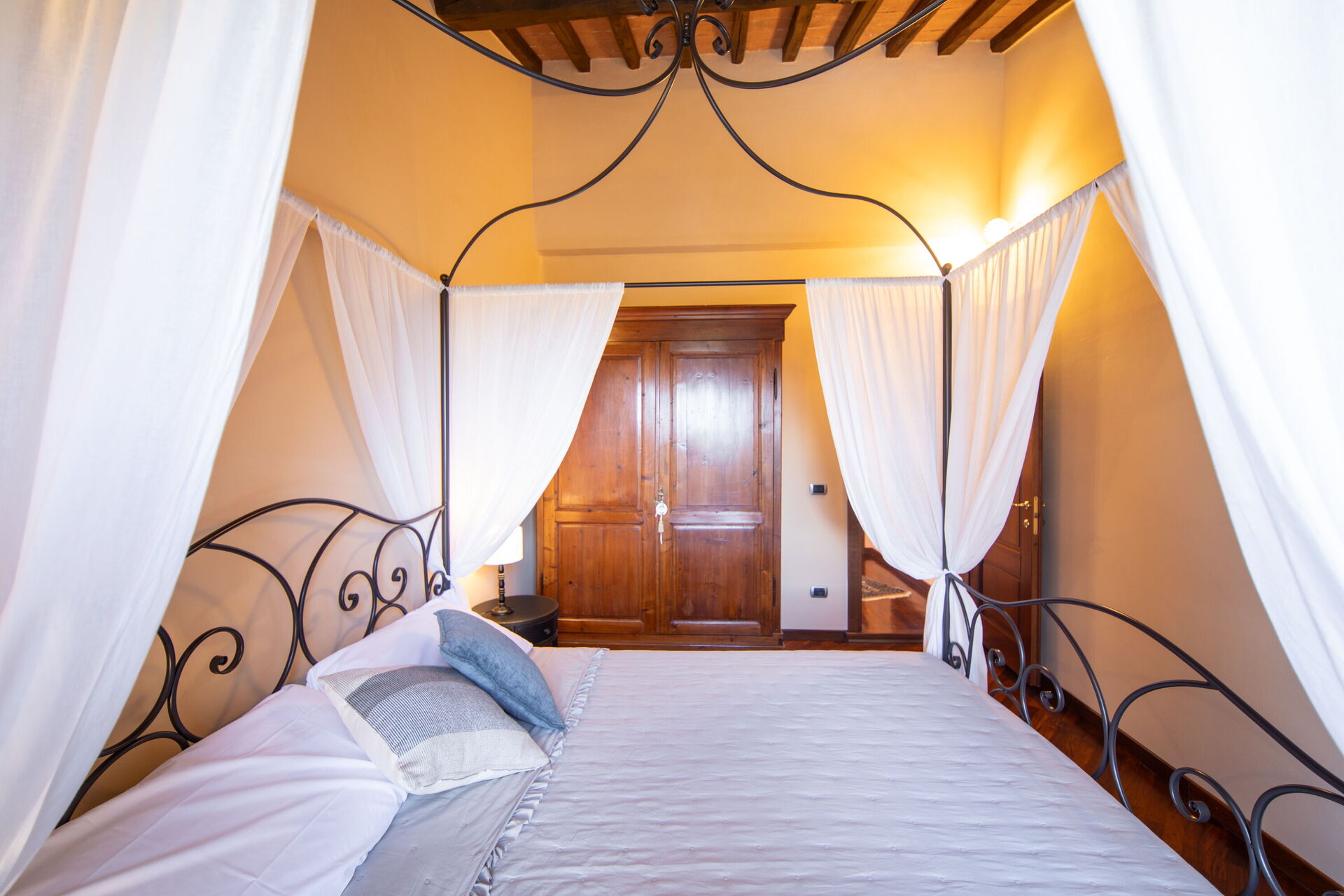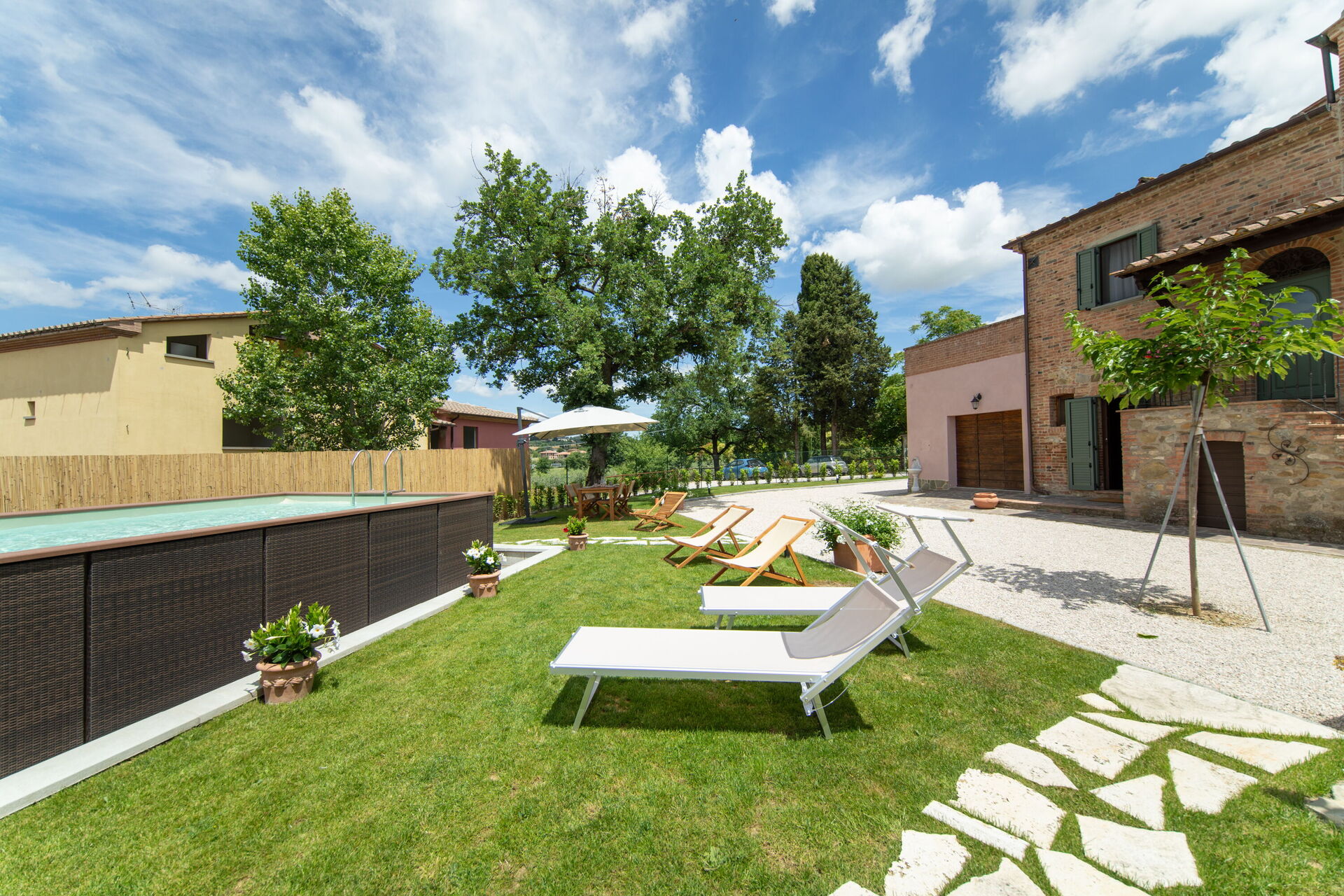 Ved ankomst vil I blive modtaget af ejeren eller repræsentanten og I vil finde en skøn ren og velholdt ejendom med udsigt over bakkerne og byen perfekt til en fredelig ferie i Toscana. Til jeres store nydelse vil I finde en privat pool, hvor I kan køle ned, mens I nyder en dejlig kold drik efter en travl dag med sightseeing. Til jeres store nydelse er der på ejendommen gårdhave, grill og boblebad. Hvis I nyder at lave mad til familie og venner så er der et veludstyret køkken inkluderet kaffemaskine, mikroovn, brødrister, komfur og køleskab, samt, , samt masser af service og bestik til op til seks personer. Hvis I foretrækker at spise 'al fresco', er der en fuldt møbleret veranda, hvor I kan nyde vejret, mens I spiser udendørs.