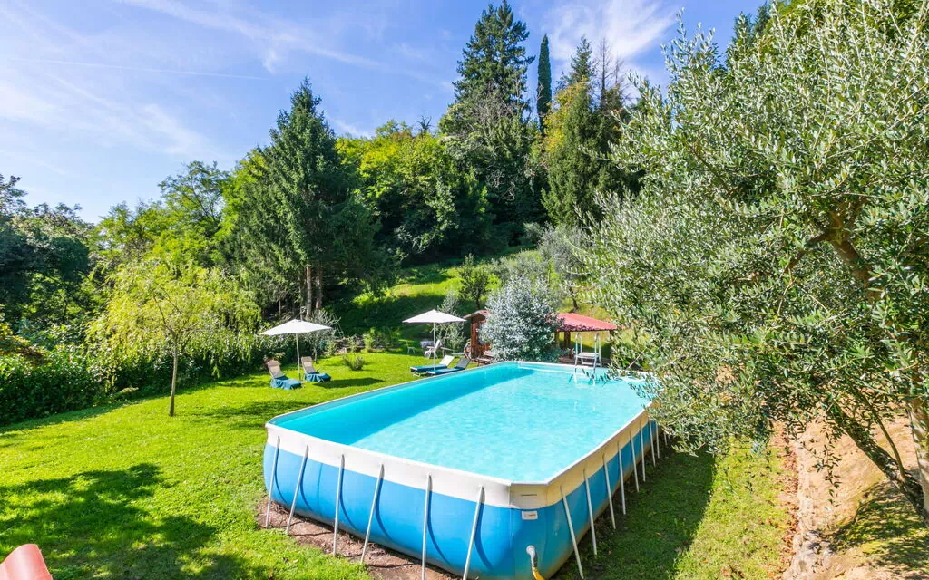 Hus på landet 100 meter over havets overflade, ensidig tilbygget. 2.5 km fra bymidten af Reggello, 36 km fra centrum af Firenze, rolig beliggenhed, i det grønne. Til alene benyttelse: have 800 m2 (ikke hegnet ind), pool (oppsted svømmebassin) (10 x 6 m, 140 cm dyb, Sæsonbestemt tilgængelighed: 01.Maj. - 30.Sep.). Havemøbler, grill, Underholdning af poolen af ejeren/gartneren. I huset: centralvarme, Opvarmningen betales lokalt, opvarme kun tilgængelig fra 01.Nov. - 04.Apr.. Tilkørsel til til huset (300 m natursti). Parkeringsplads på grunden. Supermarked 2.5 km, indkøbscenter 6 km, restaurant 2.5 km, busstoppested 2.5 km. Nærliggende attraktioner: Castelfranco di Sopra 13 km, Vallombrosa 15 km, Loro Ciuffenna 22 km, Greve in Chianti 30 km, Gaiole in Chianti, Radda in Chianti 37 km, Poppi 50 km.