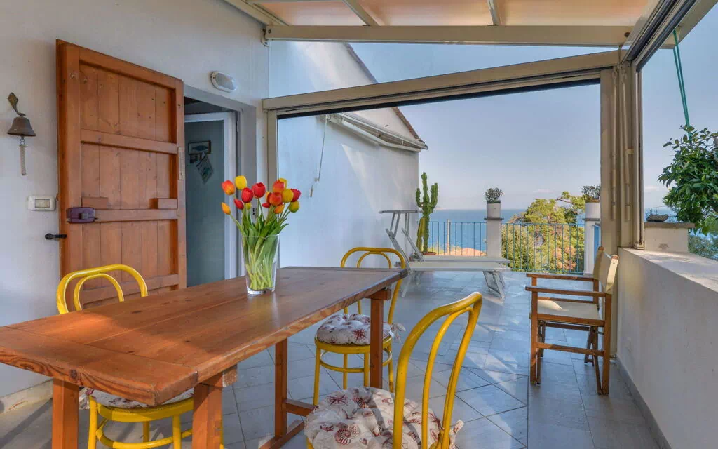 2-værelse-hus 50 m2, i stueetagen. Emner egnet for 2 voksne + 2 børn. Hyggeligt indrettet: stue/spisestue med 1 dobbelt sovesofa, spisebord og TV. Udgang til terrasse. 1 dobbeltværelse med panoramavindue med ventilator. Åbent køkken (ovn, kedel, elektrisk kaffemaskine). Udgang til terrasse. Brus/bidet/WC. Intet opvarmningsalternativ. Stor terrasse 20 m2 delvis overdækket. Havemøbler, liggestole. Herlige udsigt over havet. Til benyttelse: vaskemaskine. Internet (trådløs LAN [WLAN], gratis). Bemærk venligst: privat indgang, brandalarm, brandslukker. IT049021C24GCQF5ZP