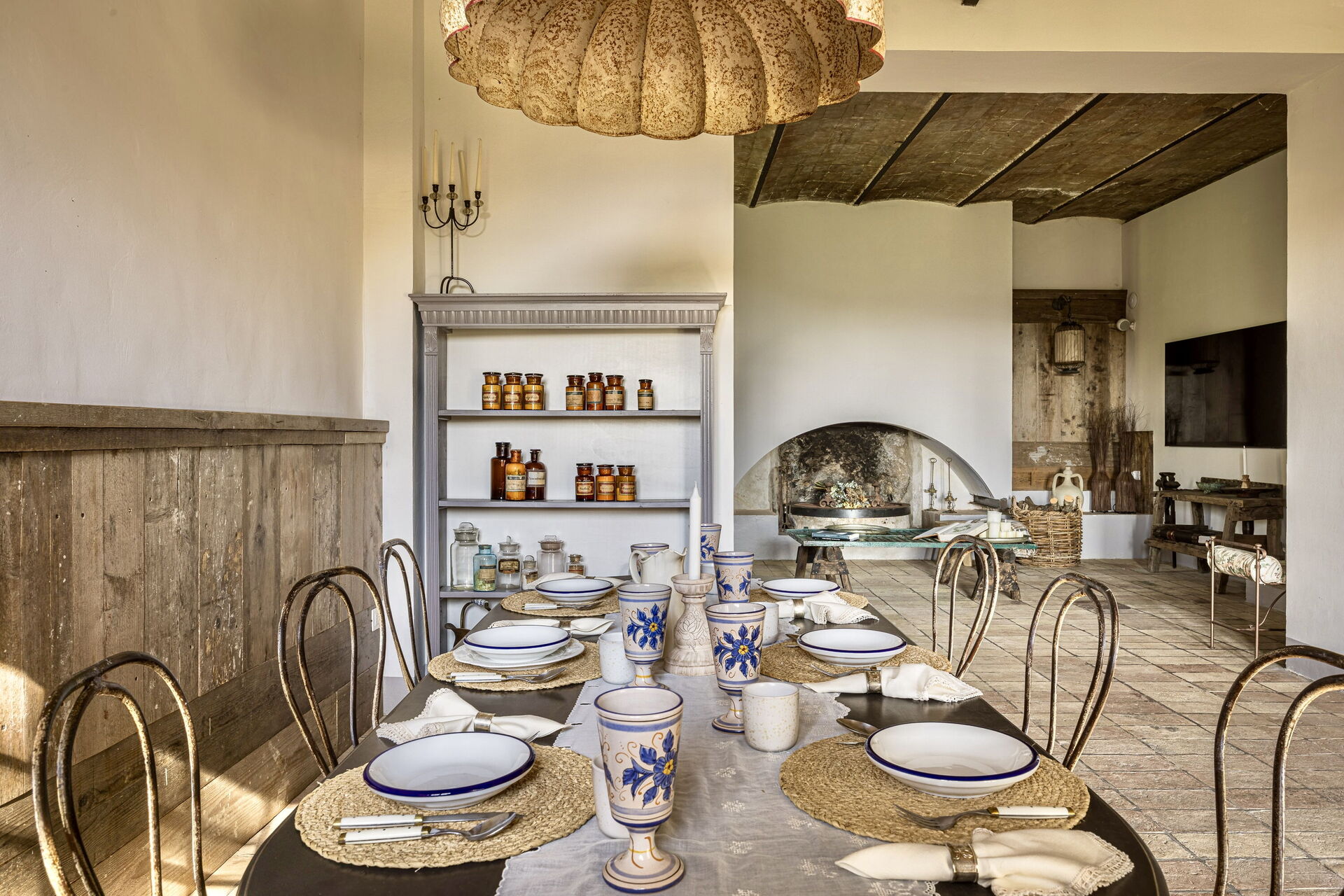 Spisestue: spisebord, klimaanlæg, WIFI internet, myggenet, udgang til have, udgang til gårdhave, udgang til terrasse.
