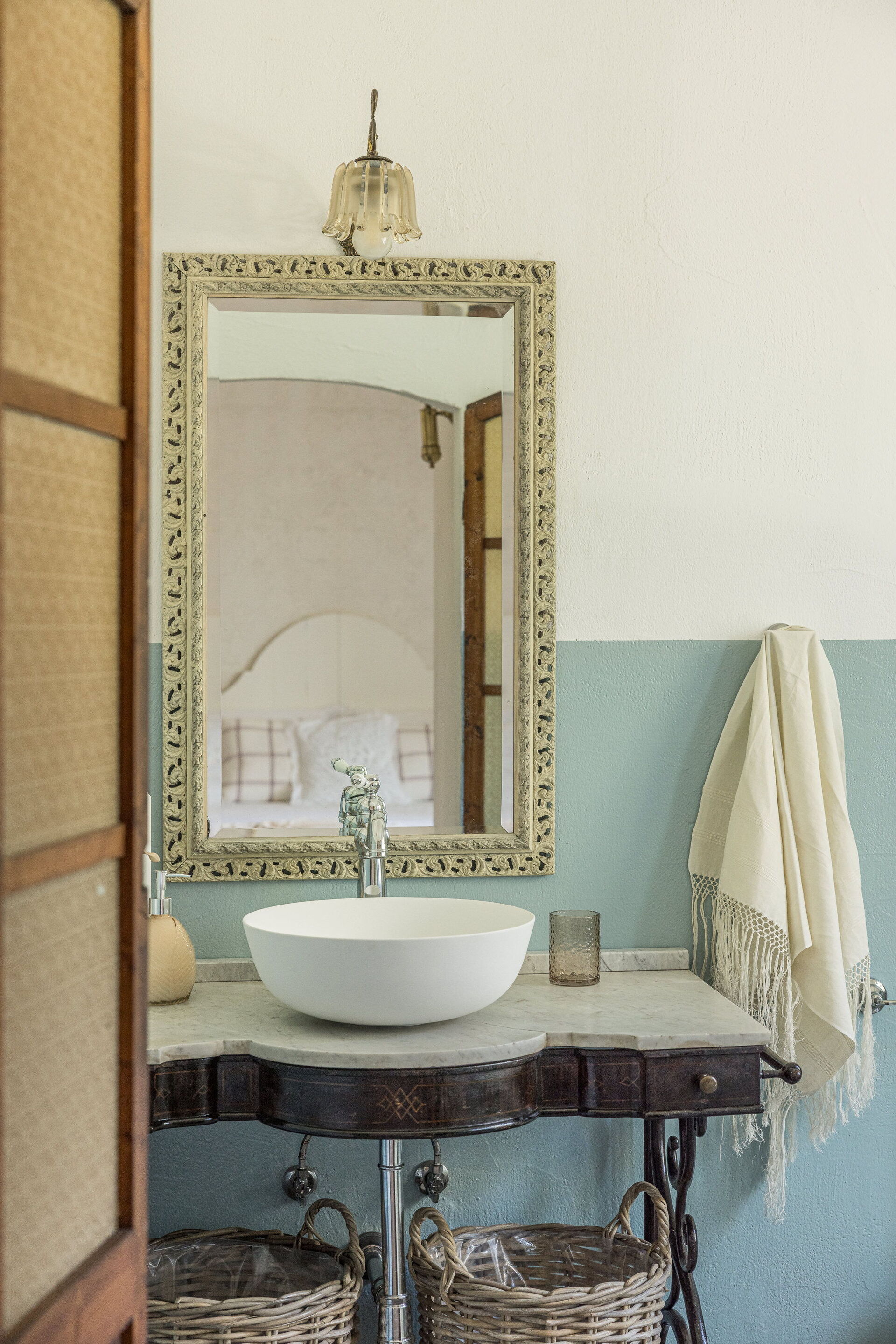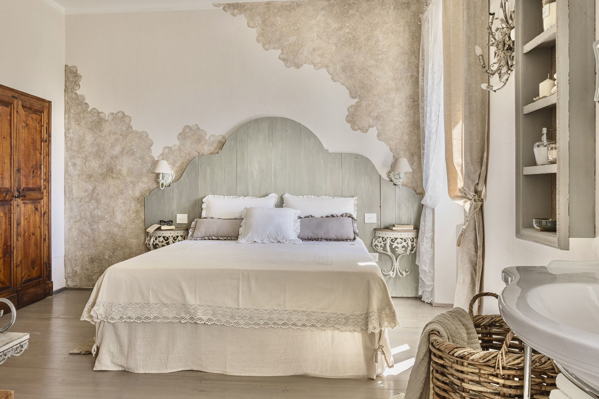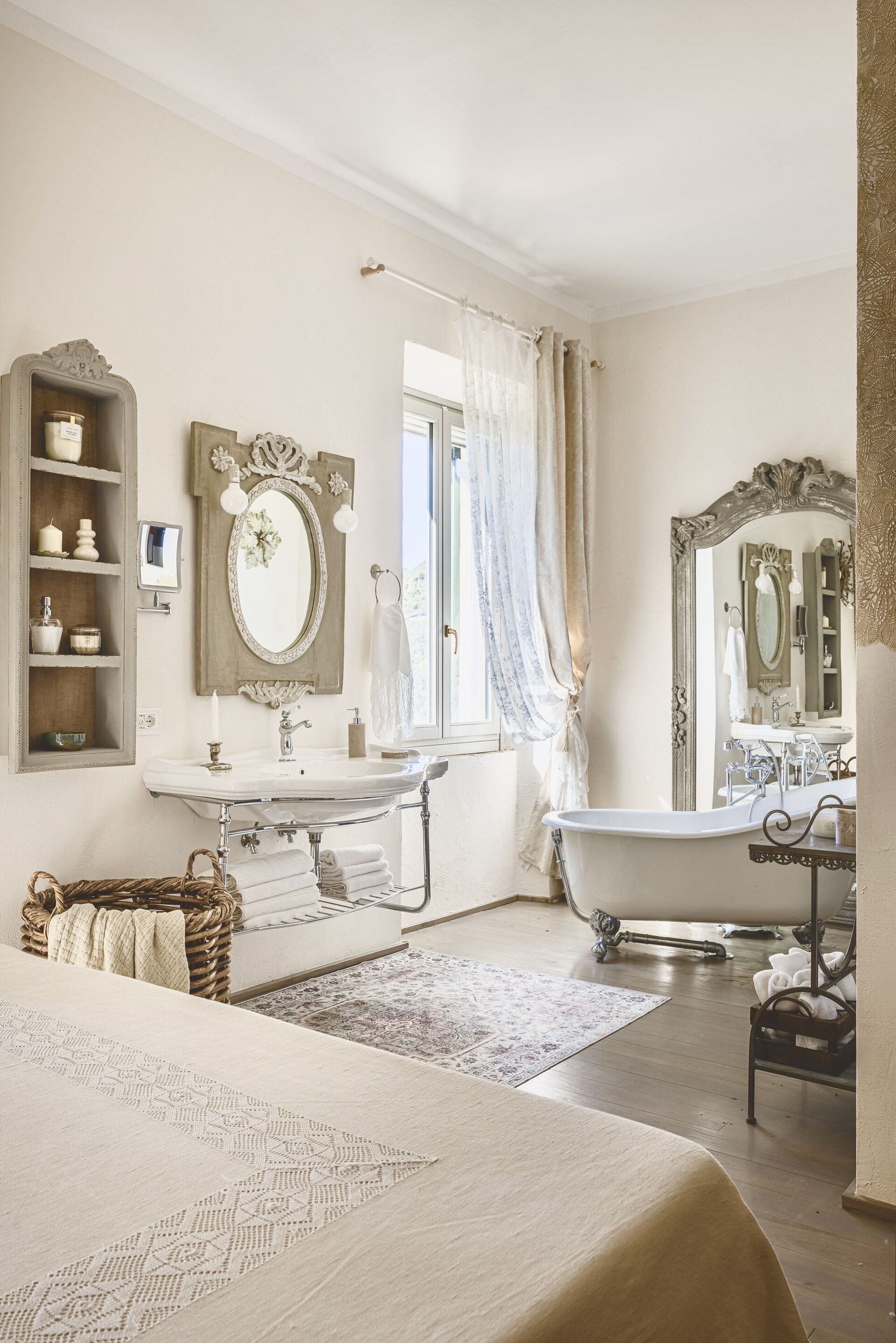 Soveværelse med bad 2 (35 m2): king size seng (bredde: 2m, længde: 2m), WIFI internet, klimaanlæg, myggenet, satellit tv, wc, bidet, hårtørrer, tørretumbler, vaskemaskine.