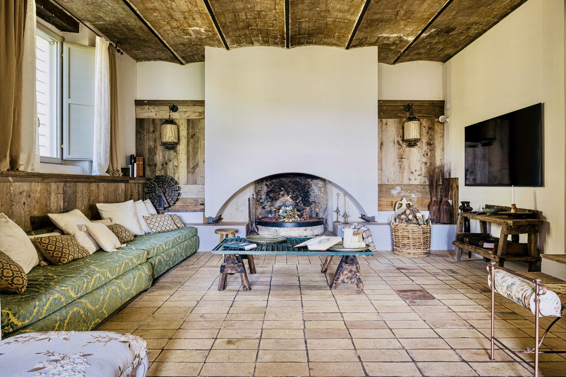 Stue (30 m2): lænestol, kamin, to sovesofaer (bredde: 1m, længde: 2m), klimaanlæg, tv, myggenet.