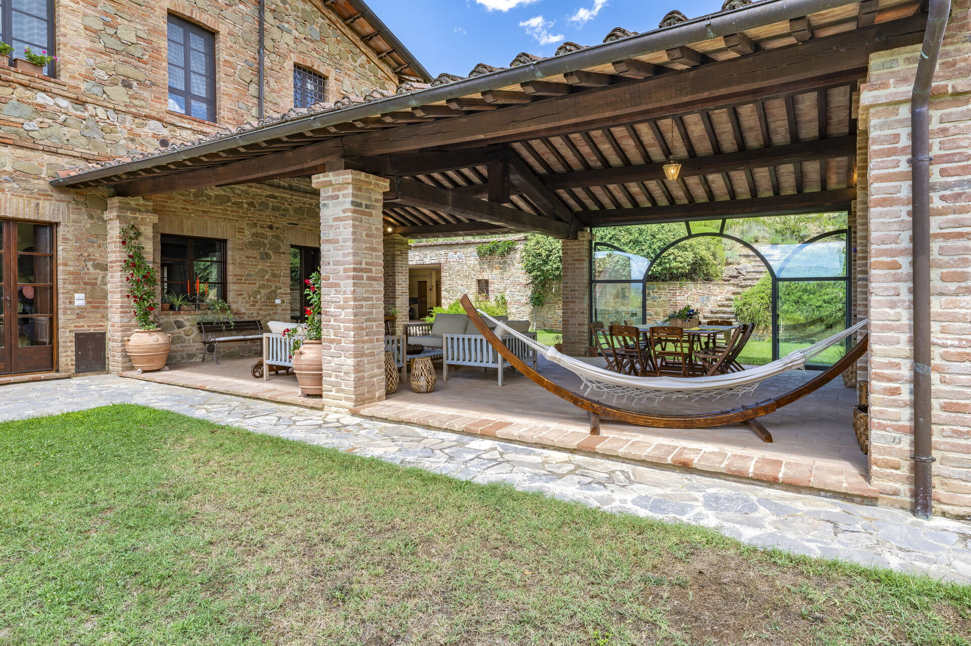 Når I ankommer, vil I møde en fin ren velholdt ejendom ideel til rolig ferie i Umbrien. Uanset hvordan I tilbringer dagene - med museumsbesøg, sightseeing, shopping eller bare ved at køre rundt på landet, så kan I slappe af med familie og venner ved poolen, når I kommer hjem, hvilket er en perfekt måde at afslutte endnu en dejlig dag på i Umbrien. Udenfor vil I finde grill og gårdhave. Hvis I nyder at lave mad til familie og venner så er der et veludstyret køkken inkluderet kaffemaskine, mikroovn, brødrister, komfur og køleskab, samt, , samt masser af service og bestik til op til ni personer. Hvis I foretrækker at spise 'al fresco', er der en fuldt møbleret veranda, hvor I kan nyde vejret, mens I spiser udendørs.