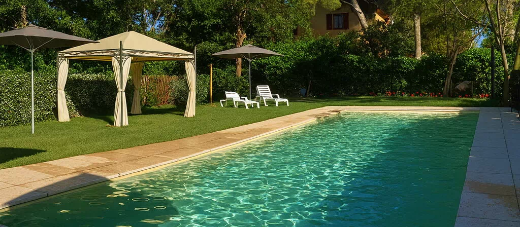 Have: swimmingpool, WIFI internet, grill, udendørs spiseplads, spisebord, havepavillon, havemøbel, liggestol.