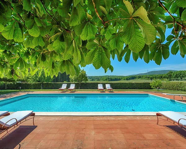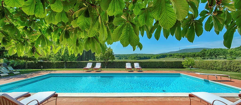 Omgivet af bølgende vinmarker, der producerer et raffineret udvalg af »Super Tuscan«-vine, inviterer ejendommen dig til at omfavne det langsomme tempo i Italien. Grunden er et mesterværk inden for landskabsdesign med velplejede græsplæner, traditionelle terracotta-krukker og farverige blomster. I hjertet af haven ligger en stor swimmingpool, fuldt udstyret med elegante liggestole og parasoller.