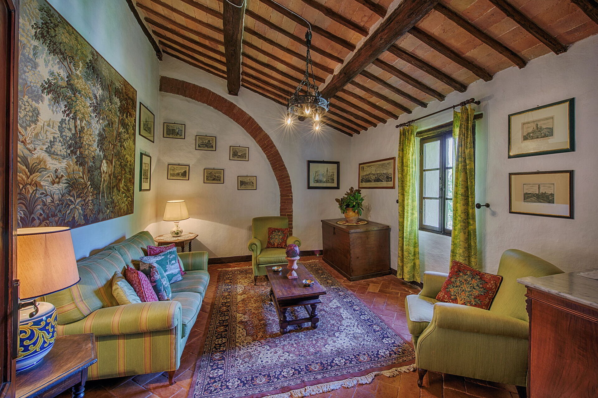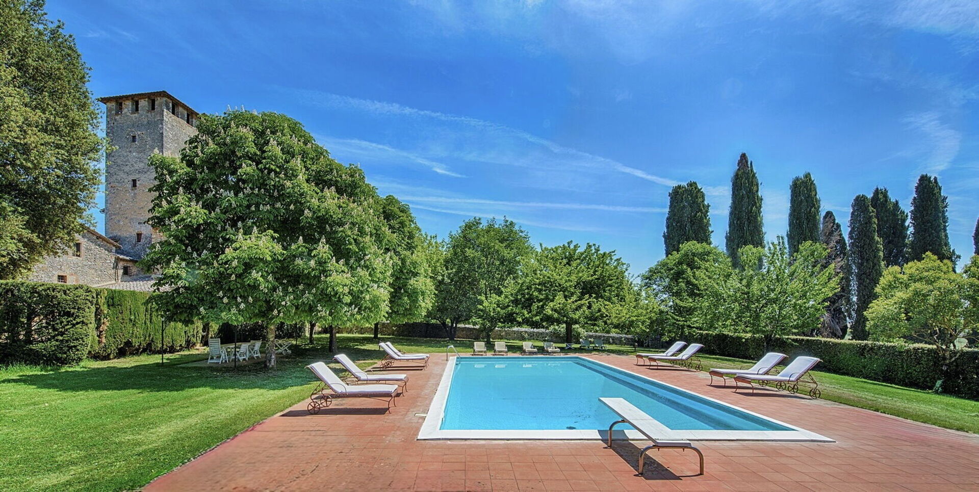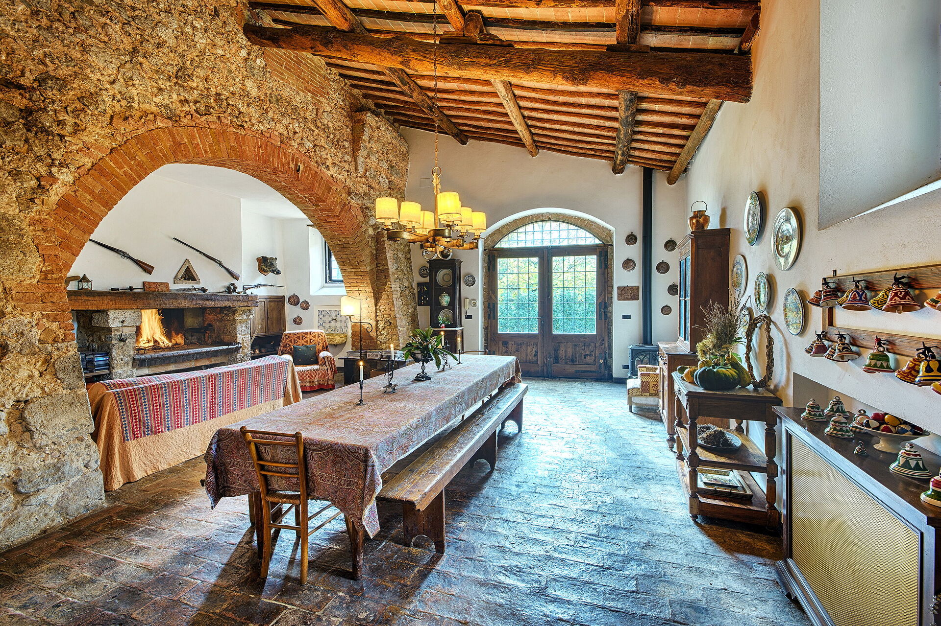 Denne storslåede ejendom ligger i det frodige grønne landskab i Montagnola Senese og er et mesterligt bevaret slot fra det 13. århundrede, kun 15 minutters kørsel fra det historiske centrum af Siena. Ejendommen er omhyggeligt restaureret af dens ejere, der bor i hovedtårnet i et afsides område, der er helt privat og adskilt fra gæsteboligerne.