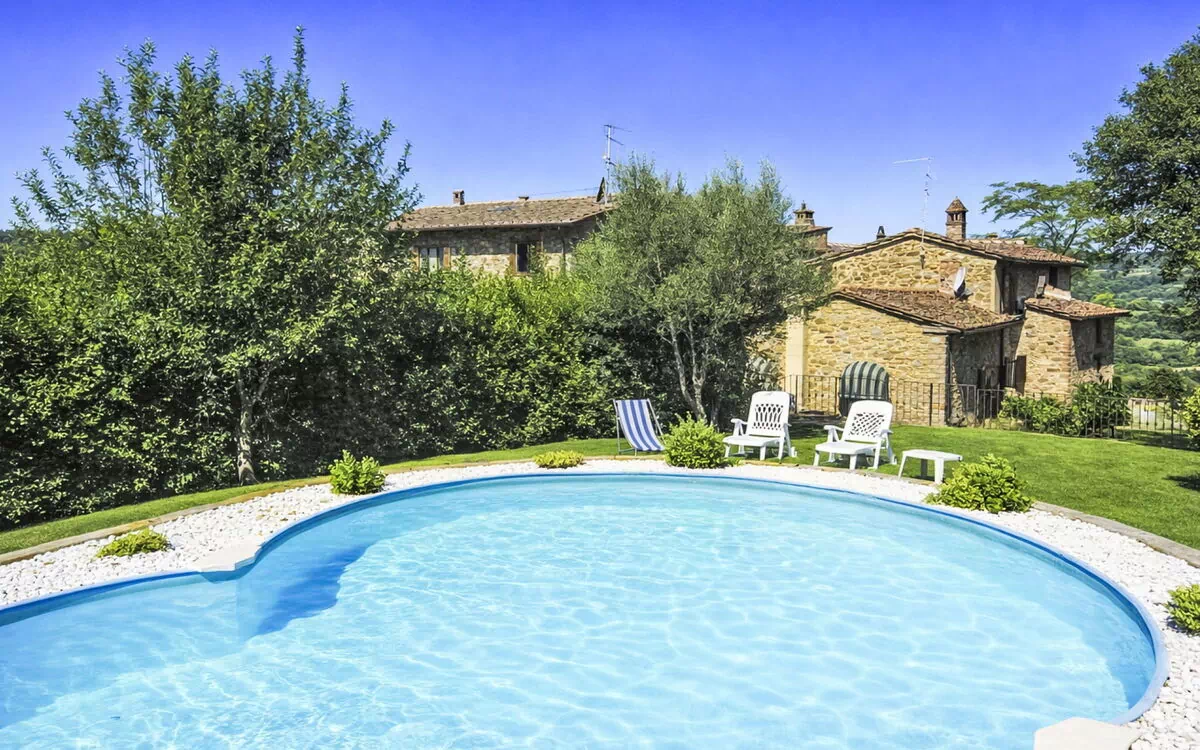 Hyggeligt, rustikt, komfortabelt dobbelthus "Cottage Roccaio", på 2 etager, omgivet af marker og vingård. 3 km fra bymidten af Castiglion Fiorentino, isoleret, rolig beliggenhed. Til alene benyttelse: velplejet have (indhegnet), pool (8 x 4 m, 150 cm dyb, Sæsonbestemt tilgængelighed: 01.Maj. - 30.Okt.) med havvand. Underholdning af poolen af ejeren/gartneren. I huset: vaskeri, vaskemaskine. Tilkørsel til til huset (600 m natursti). Parkeringsplads på grunden. Fødevarebutik 2 km, supermarked 4 km, restaurant 3 km, busstoppested 3 km. Nærliggende attraktioner: Cortona 11 km, Arezzo 22 km, Montepulciano 38 km, Firenze 100 km. Kendte søer nås nemt: Lago Trasimeno 29 km. Bemærk venligst: bil anbefales. Ejer bor på sammen grund. Ejeren har en hund.