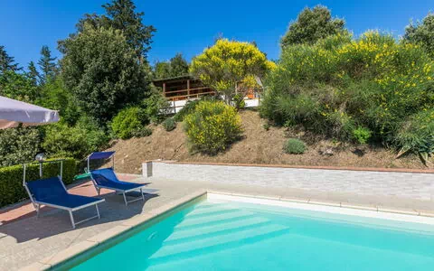 Enfamiliehus "Nido di Falco", renoveret. I bydelen La Gabella, 6.5 km fra bymidten af La Sassa, 8.5 km fra centrum af Canneto, 20 km fra bymidten af Cecina, isoleret beliggenhed, 25 km fra havet, i det grønne. Til alene benyttelse: grund 2'500 m2 (indhegnet), have i forskellige niveauer træer, pool (8 x 4 m, Sæsonbestemt tilgængelighed: 01.Maj. - 31.Okt.). Udendørs brus, terrasse (50 m2), havemøbler, grill, Underholdning af poolen af ejeren/gartneren. I huset: boblebad (alt inkl.), vaskemaskine. Skift af linned (yderlige ekstras). Udskiftning af håndklæder (yderlige ekstras). Tilkørsel (200 m natursti). Parkeringsplads på grunden. Indkøbsforretning 1.4 km, supermarked 15 km, busstoppested "la Gabella" 600 m, sandstrand "Marina di Cecina" 25 km.