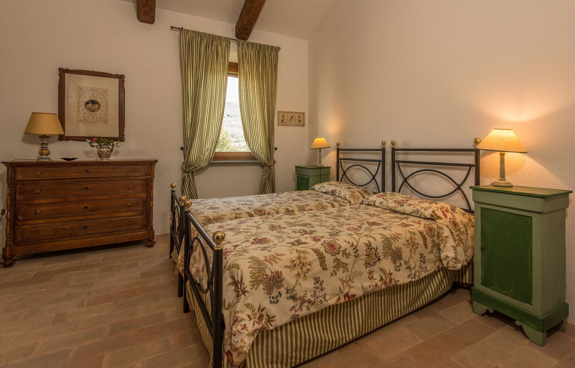 Il Molinazzo er en elegant, uafhængig landvilla med plads til 10 til 14 personer i 7 soveværelser og 7,5 badeværelser, perfekt beliggende til at udforske den sydlige del af Toscana, Umbrien og Lazio. Beliggende i Montecchio, Italien, kun 20 km fra den billedskønne by Orvieto, strækker denne nyligt restaurerede ejendom sig over 500 kvadratmeter indendørs og ligger på 2 hektar grund. De vil opleve, at indkvarteringen er personligt indrettet med fremragende smag af ejerne, der opnår en vidunderlig balance mellem antikke møbler kombineret med moderne bekvemmeligheder. Ejendommen byder på en panoramisk swimmingpool i en dominerende position med spektakulær udsigt over det bølgende landskab. Aircondition er tilgængelig i alle soveværelser for at sikre jeres komfort i de varme sommermåneder, og trådløs internetforbindelse er tilgængelig under hele jeres ophold. Den omfattende gårdsplads indbefatter velholdte haver fyldt med roser, lavendel og andre blomstrende planter, alt sammen omgivet af olivenlunde og cypresser i et landskab formet af århundreders tålmodig landbrugstradition. Il Molinazzo består af 2 tilstødende stenhuse, hvor hovedhuset har plads til op til 10 personer i 5 soveværelser og 5 badeværelser, mens et mindre gæstehus rummer yderligere gæster i 2 soveværelser og 2 badeværelser plus et vaskerum. Denne indretning gør ejendommen ideel til familiesammenkomster eller grupper på 5 til 7 par, der søger både privatliv og fælles arealer.