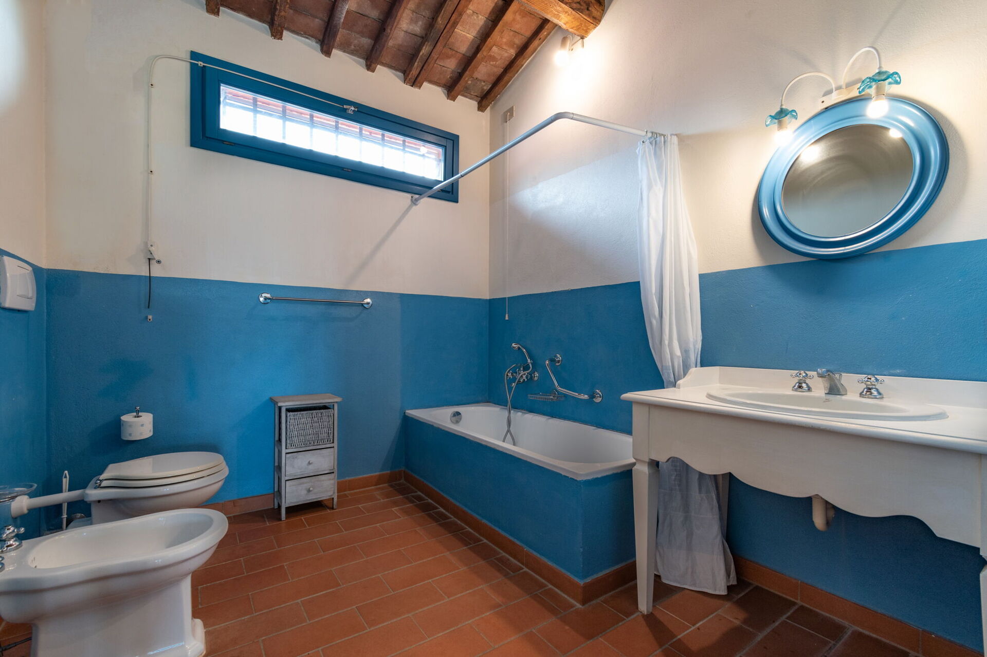 Badeværelse: vask, wc, bidet, badekar, hårtørrer, WIFI internet.