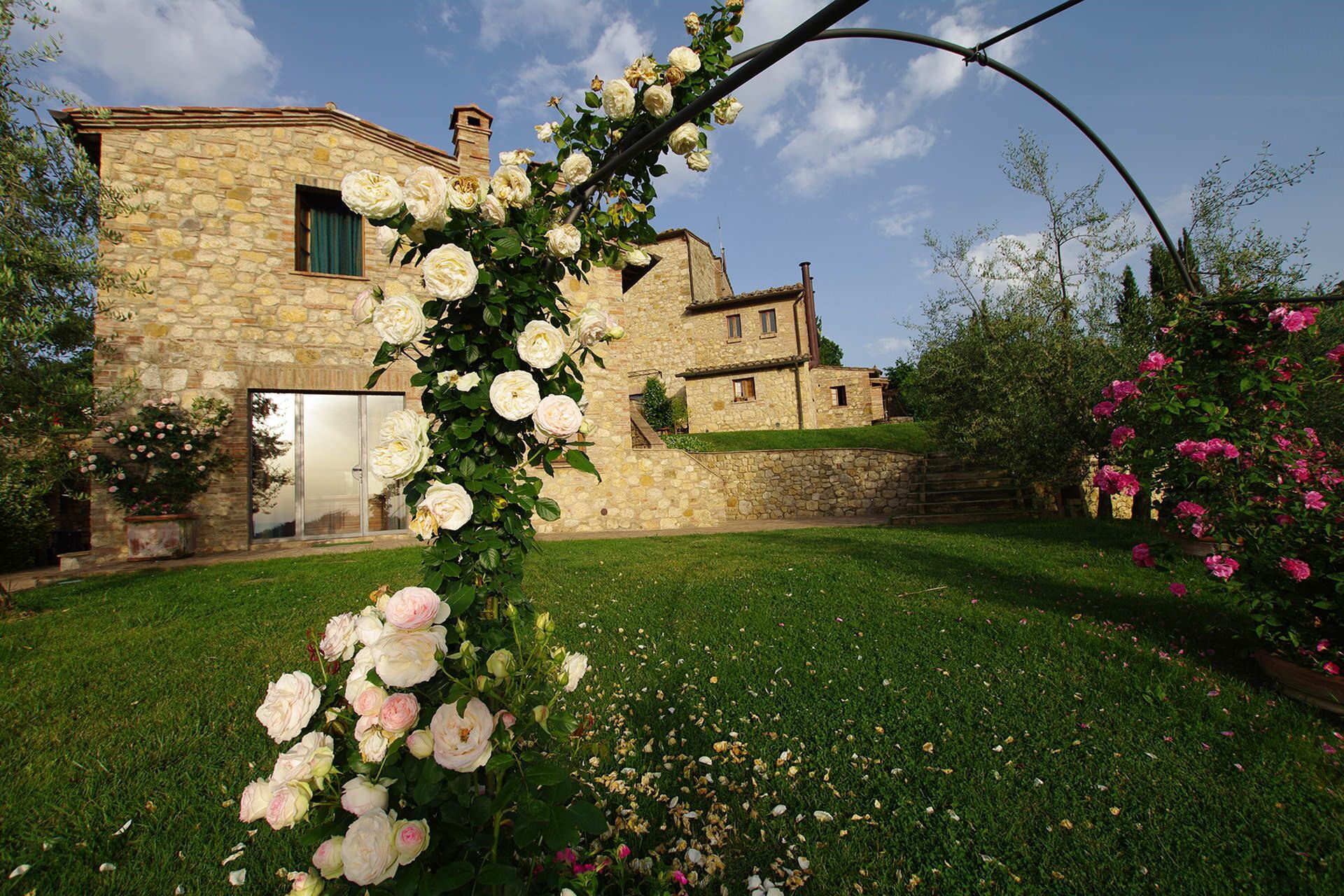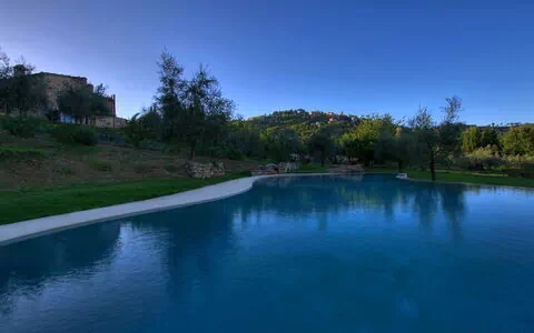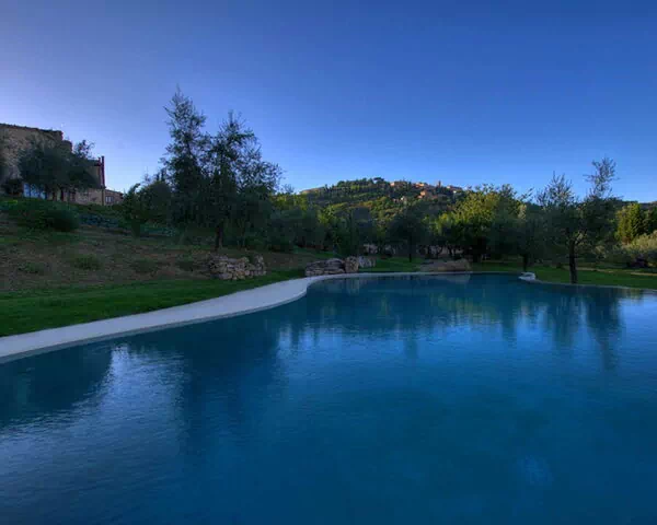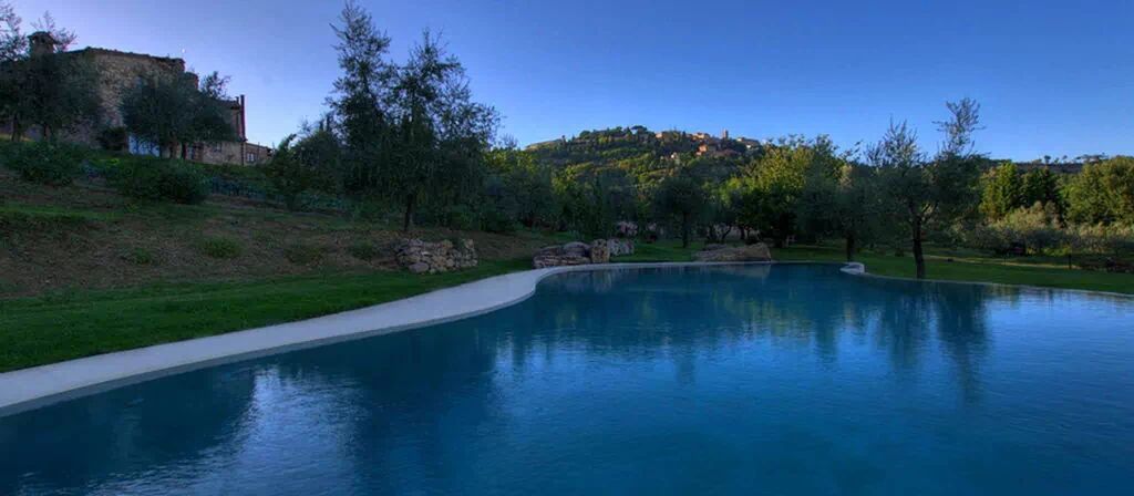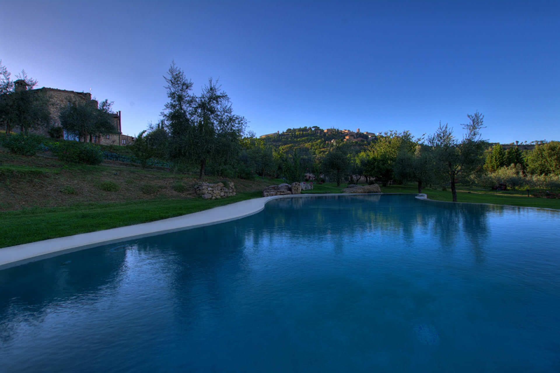 Svømmepølen er placeret til at fange udsigten til Montepulciano og er udstyret med solsenge og parasol. En overdækket pavillon møbleret med havemøbler tilbyder et skyggerigt rum til afslapning eller uformelle sammenkomster. Flere af suiterne har direkte adgang til haven. Haven er fyldt med oliventræer, blomstrende planter og gamle roser, som skaber en rolig og duftende atmosfære. En barbecue er til rådighed for gæsterne.