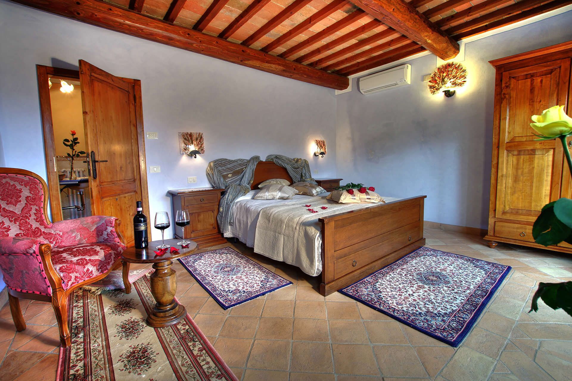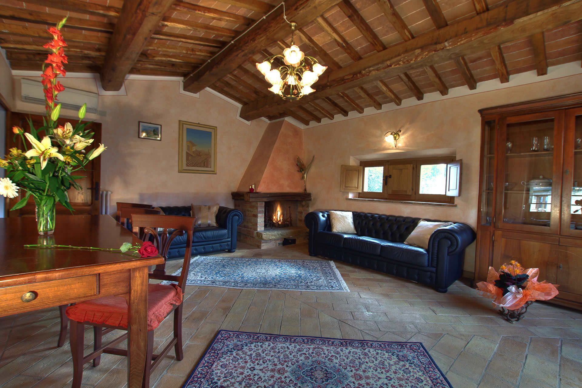 Villaen er blevet omhyggeligt restaureret med bevarelse af sin autentiske stenkarakter. Badeværelserne er udstyret med natursten eller mosaikdetaljer, og bruser er forsynet med hydromassage-dyser. Aircondition er til rådighed i de varmere måneder. Et funktionsdygtigt pejs med åbent ildsted tilbyder varme og atmosfære i køligere aftener. Spisestuen har store glasvinduer med udsigt til det omkringliggende landskab. Wi-Fi er gratis tilgængeligt i alle rum. Parkering er til rådighed på ejendommen.