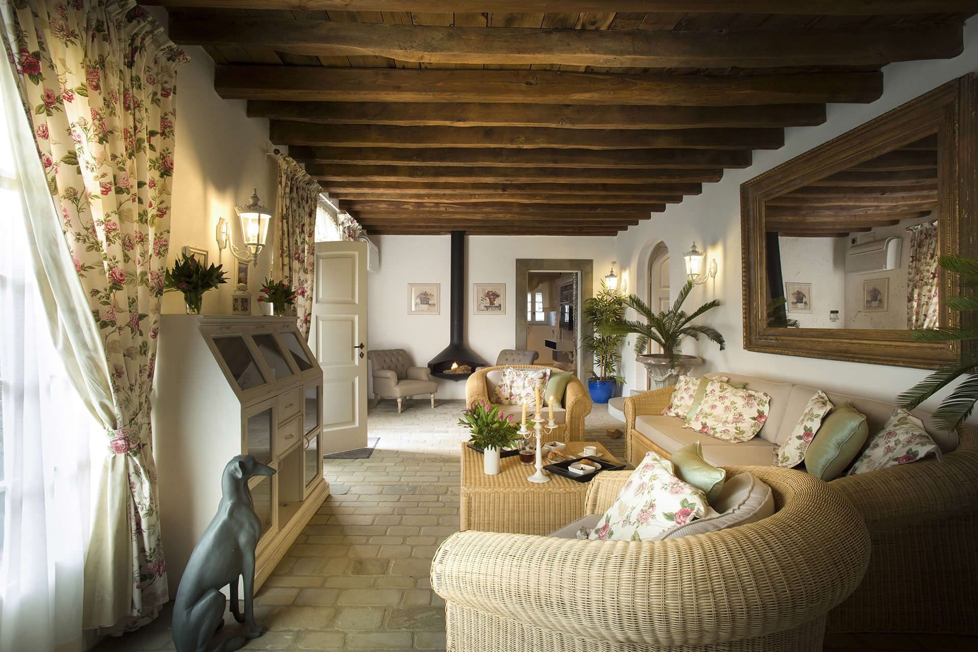 Første sal åbner sig til et andet opholdsområde med sofaer og huser 4 dobbeltsoveværelser: 3 med dobbeltseng og 1 med 2 enkeltsengle, der kan sammensættes til dobbeltseng. Hvert soveværelse på denne etage er udstyret med indbygget garderobeskab og eget badeværelse med enten bruser eller badekar.