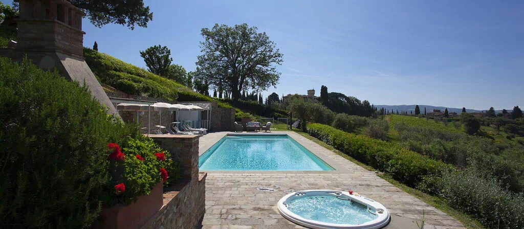 Villa Chianti ligger i hjertet af Toscanas landdistrikt blandt de bølgende bakker i det berømte Chianti-område ved Tavarnelle Val Di Pesa i Italien. Villaen er placeret på toppen af en blid bakke med udsigt over Chianti-landskabet. En stately driveway med cyprestræer markerer ankomsten til ejendommen. Villaen er omgivet af private, indhegnede udendørsarealer, der sikrer fuldstændig privatliv og sikkerhed for gæsterne.