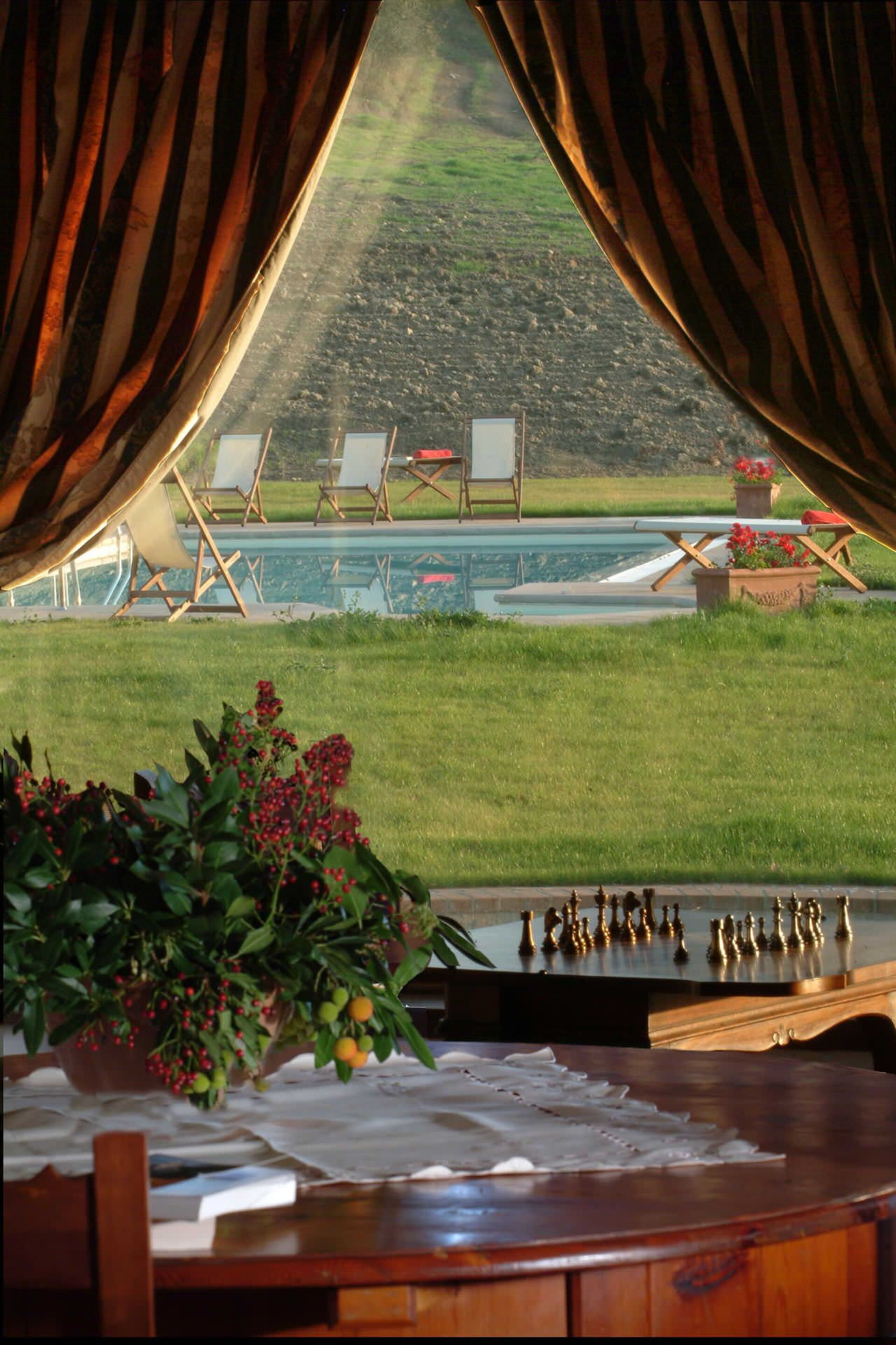 Villa Monticchiello is in the heart of Orcia Valley, surrounded by wineries and the characteristic vegetation of this beautiful Tuscan area; it is just 2 km from the hamlet of Montichiello wich offers basic services like grocery and restaurant; ne nearest largest town is Pienza 5 km; Chianciano Terme (with a train station) is 10 Km away; Montepulciano is 13 km; Cortona 25 km; Montalcino 34 km; Siena 54 km; Arezzo 56 km; Perugia 65 km; Florence (Airport) 110 km; Rome (Airport) 175 km