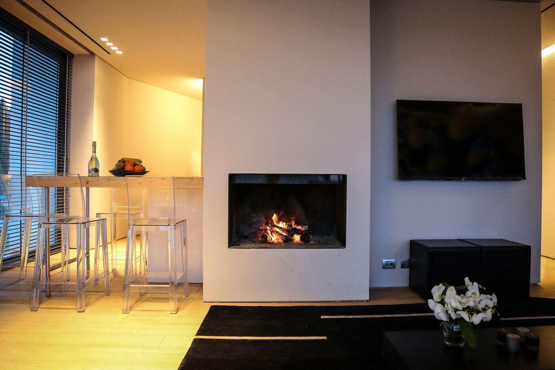 Stue 1: sofa, kamin, WIFI internet, klimaanlæg, tv.