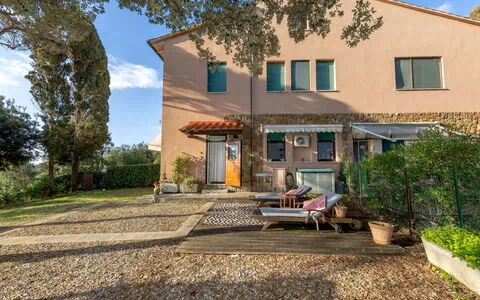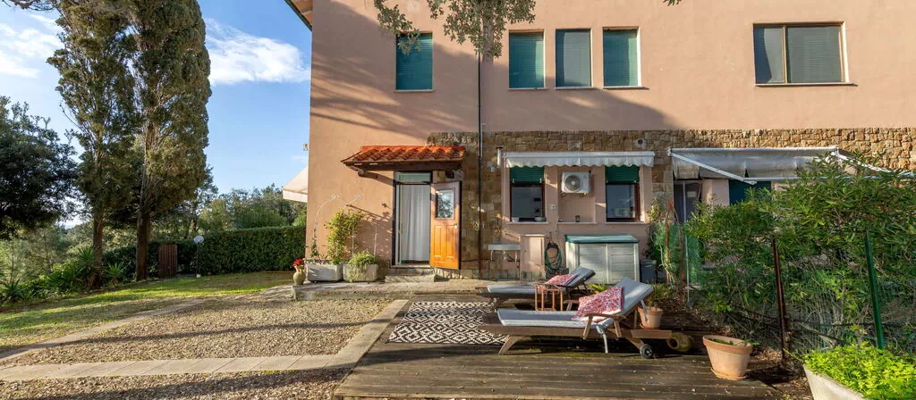 Denne lejlighedsbygning ligger i det maleriske kystlandskab ved Rosignano Marittimo i Italien og tilbyder 10 lejligheder fordelt over 2 etager. Ejendommen er beliggende på en privat, indhegnet naturgrund på 700 kvadratmeter med elektriske indkørselporte, som sikrer privathed og sikkerhed for gæsterne. En stor privat gårdsplads omgiver bygningen og skaber et roligt og naturligt miljø. Adgang til ejendommen sker via en grusvej på cirka 100 meter fra hovedvejen.