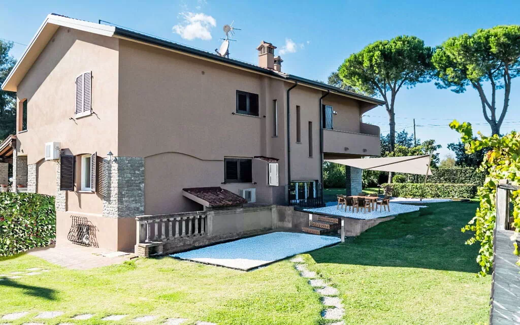 Denne ejendom ligger i det maleriske toscanske landskab nær landsbyen Montescudaio og udgør et hyggelig feriehus på 2 etager. Beliggenheden er strategisk: kun 2 km fra Cecinas centrum og 4,5 km fra havet, hvilket gør den til en ideel base for udforskning af den toscanske kyst og dens kulturelle arv. Den fuldt indhegnede private have på 400 m² med velholdt græsplæne og modne træer skaber et roligt og sikkert miljø for gæster i alle aldre. Ejendommen råder desuden over en imponerende svømmepøl på 9 x 5 meter med en dybde på 120 til 140 cm.