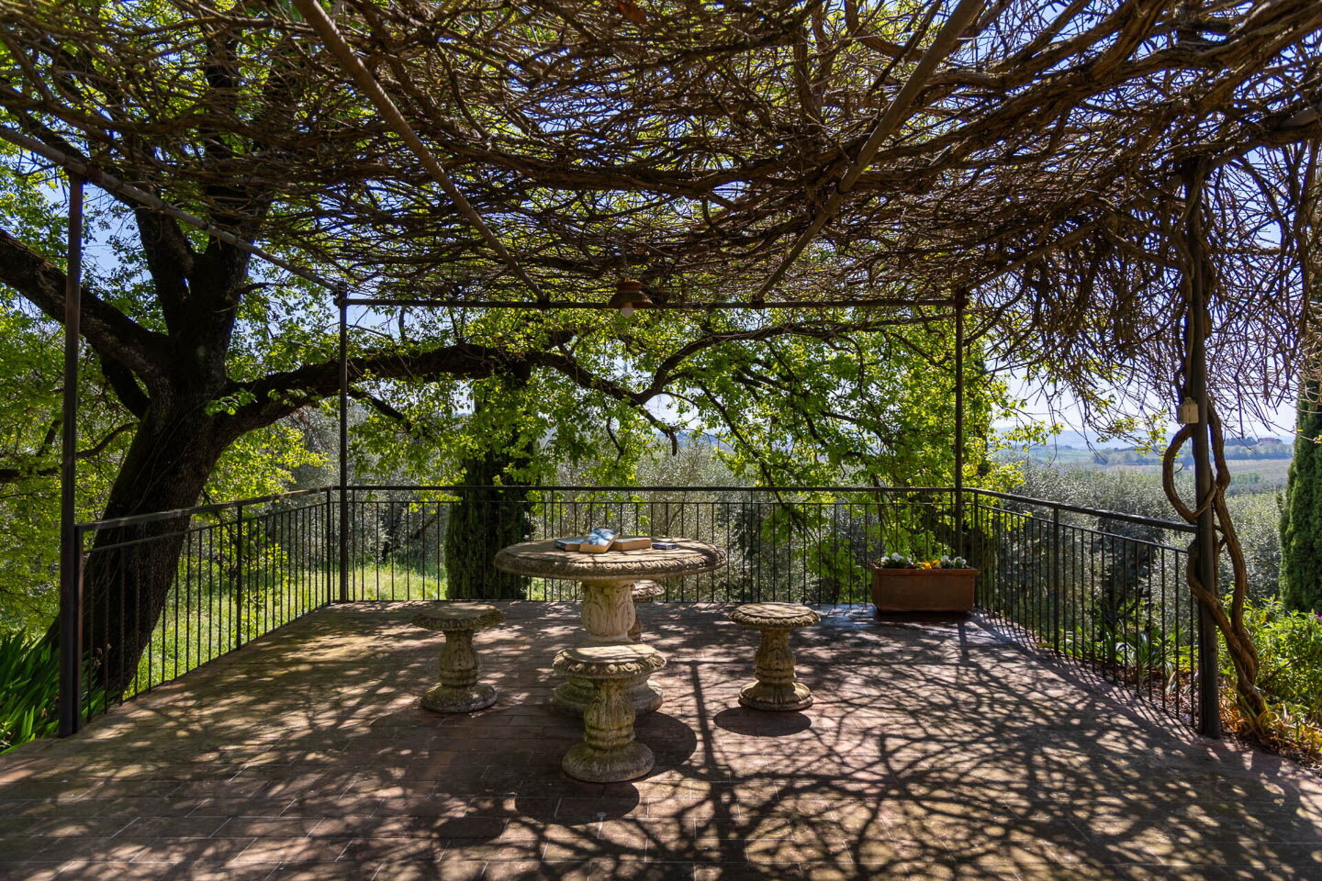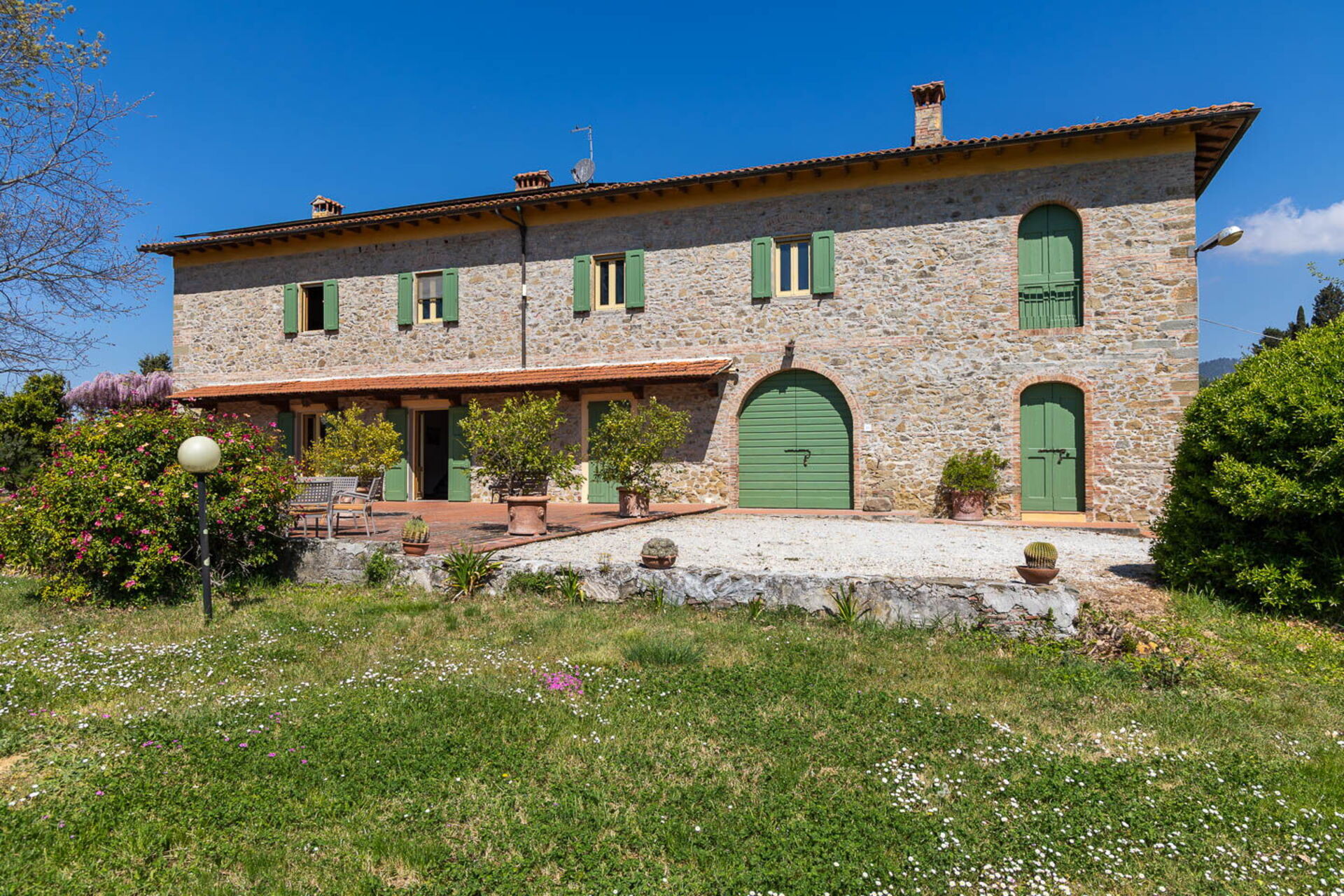 Ved ankomst vil I møde en flot ren velholdt ejendom med udsigt over bakkerne perfekt til behagelig ferie i Toscana. Til jeres store nydelse vil I finde en privat pool, hvor I kan køle ned, mens I nyder en dejlig kold drik efter en travl dag med museumsbesøg. Udenfor vil I også finde grill, tennisbane og gårdhave. Hvis I nyder at lave mad til familie og venner så er der et veludstyret køkken inkluderet kaffemaskine, mikroovn, komfur og køleskab, samt, , samt masser af service og bestik til op til 14 personer.