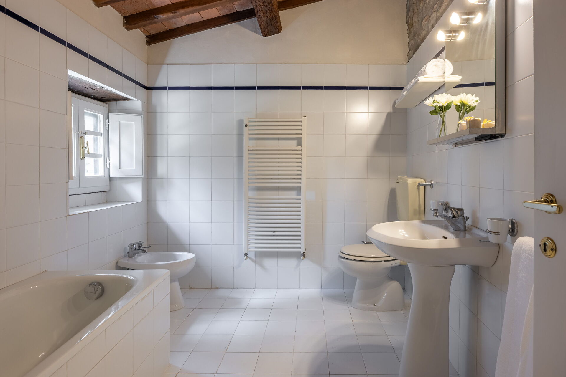 Badeværelse: vask, wc, bidet, bruser, hårtørrer, WIFI internet.