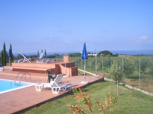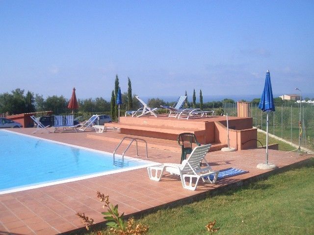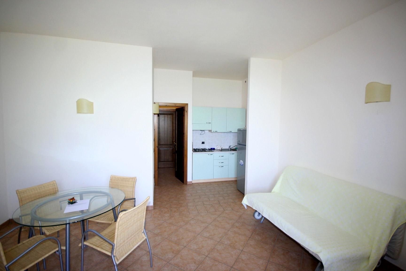 Ground floor: living-room (TV) with double sofa bed, dining area and kitchen corner (oven, freezer), large double bedroom with panoramic view on the sea, bathroom with shower.