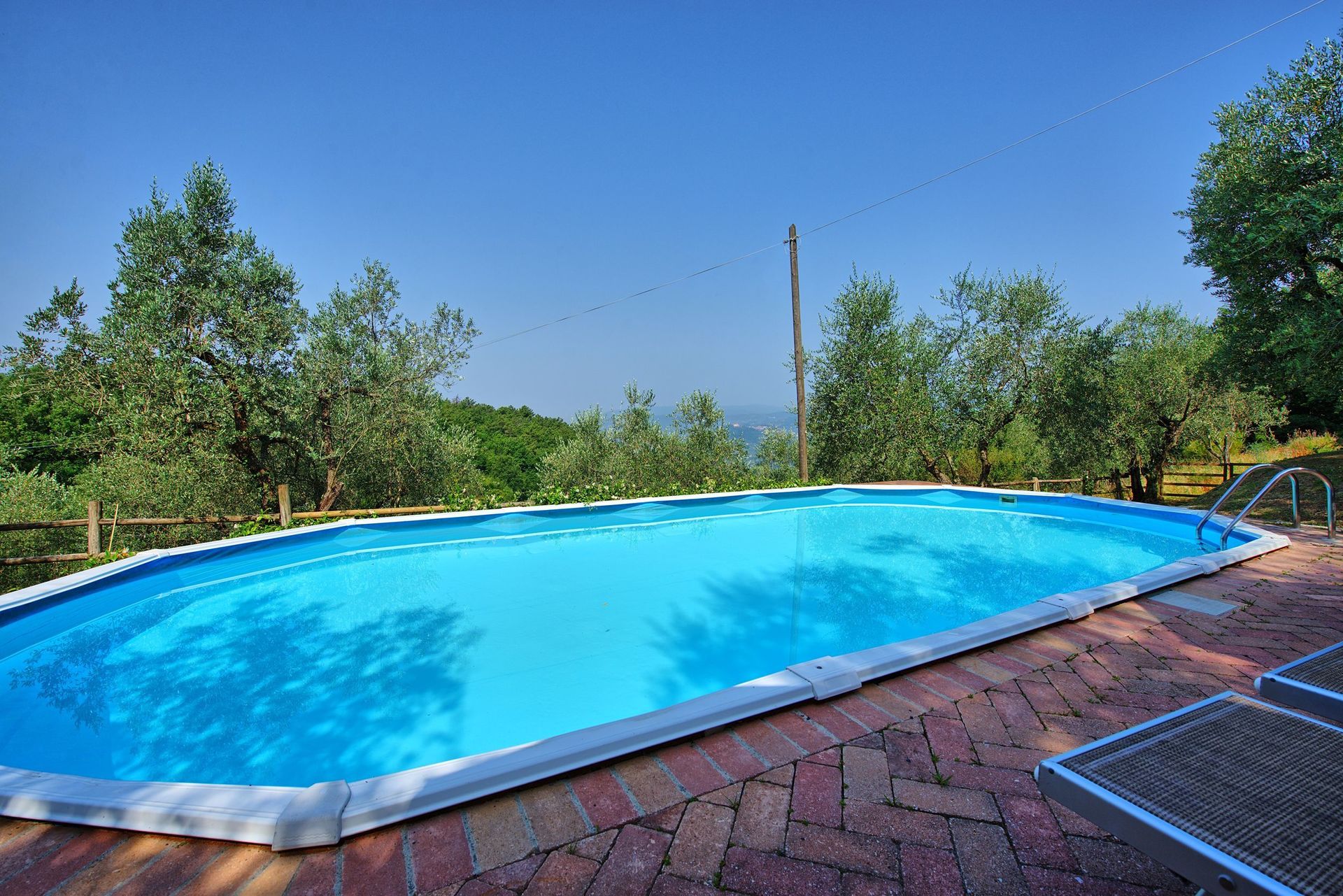 [English translation courtesy of Easy Reserve] Beautiful house and very complete, too bad there is no patio so you can sit outside in cooler temperatures or rain. Swimming pool accessible via a kind of fire stairs, not ideal with children. Swimming pool too deep for people with small children (1.20 m). Little space to lie down by the pool itself and you cannot walk around it. Nice view. The road to the house is steep and bad. Luckily we had good weather, but with bad weather this is really a challenge. Not recommended for cycling. Lots of biting flies and occasionally nuisance from dog barking, but not constantly. Great pizza oven and barbecue. There are plenty of shops and supermarkets in the village. The Monday market is very large but much of the same. In the town 5 minutes away is a nice shopping center with a large supermarket (Coop). Many beautiful towns in the area. The coast is also very doable.Vil du anbefale denne ejendom til en ven? Ja