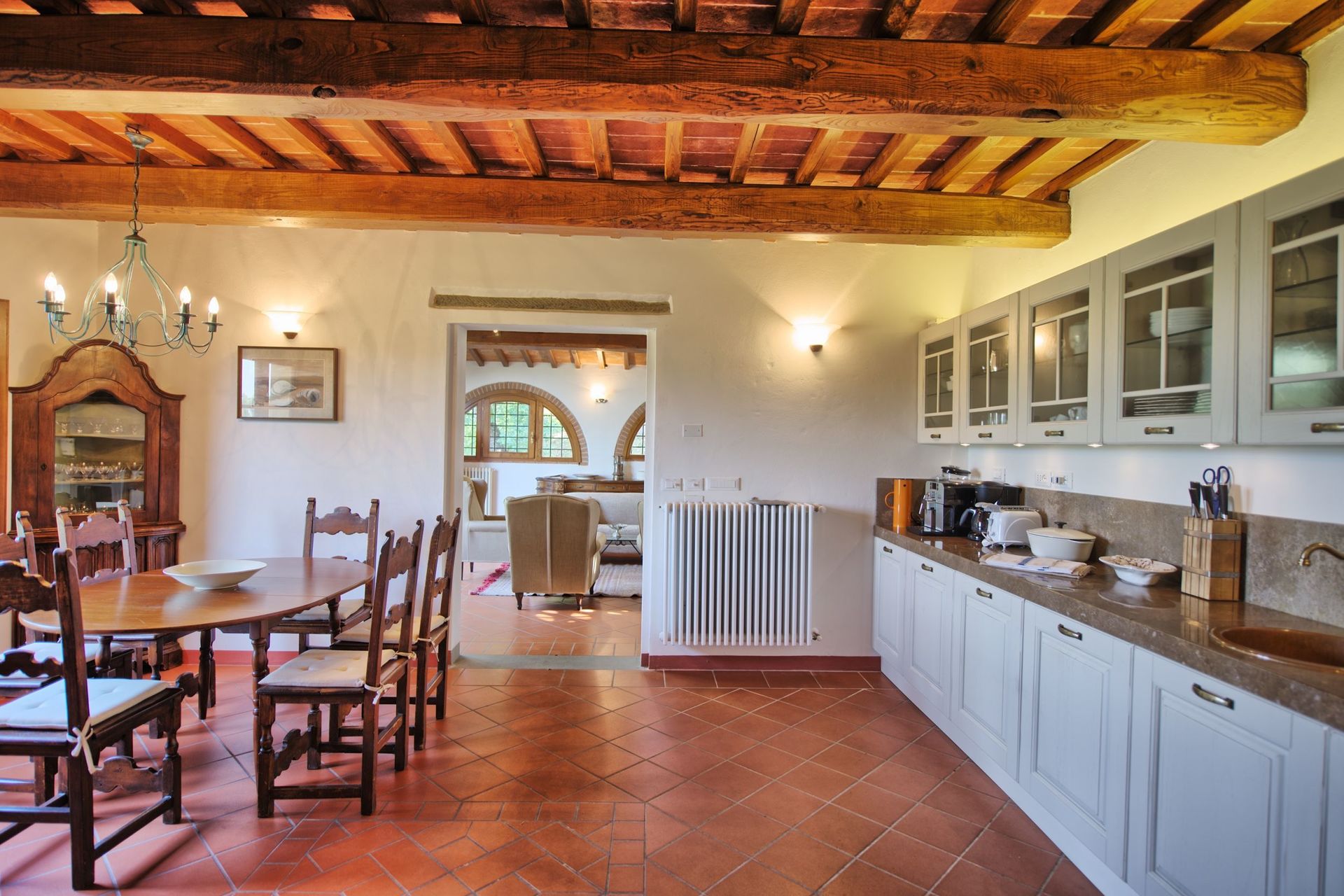 We had a lovely two-week stay at the villa. The home itself is spacious and comfortable and beautifully decorated. The kitchen is well-appointed and we were able to make several meals and great coffee every morning. The outdoor space is gorgeous as well with a breathtaking view. Lena, who takes care of the home, was so sweet and accommodating and we were glad to have her nearby for help and advice. Our only complaint of the entire experience was the dogs that live nearby -- they are VERY loud and kept us up with their howling at night. Obviously not the homeowners' fault, but just something to keep in mind when you book. Everything else was just heavenly and we were sad to say goodbye to our Tuscan home!